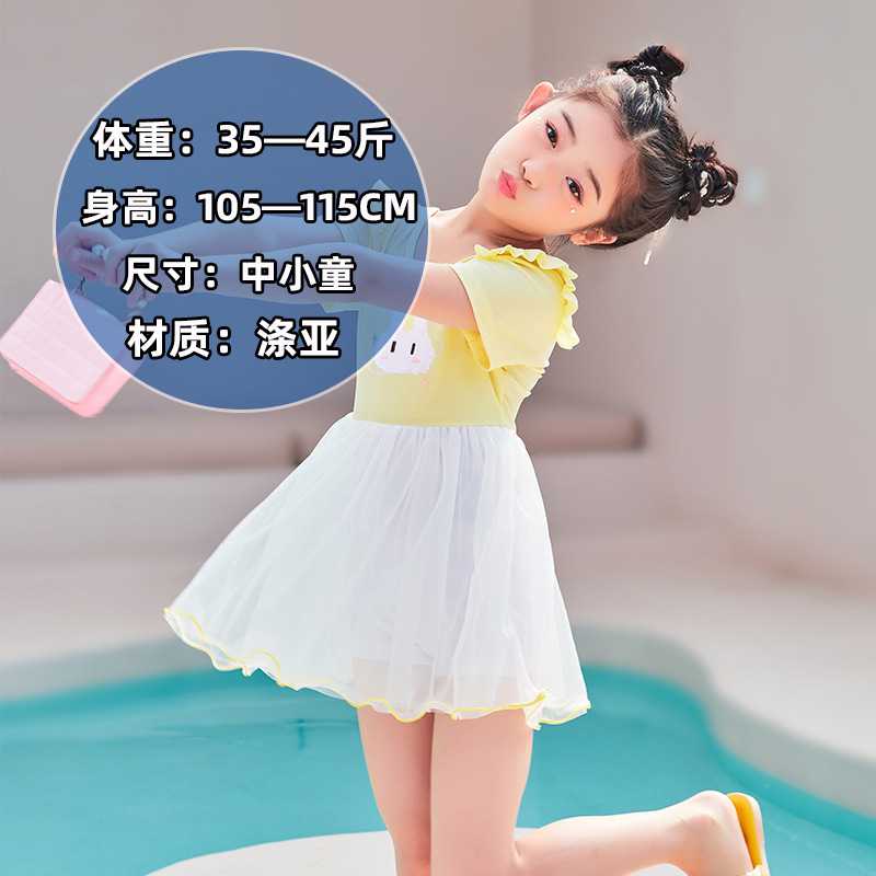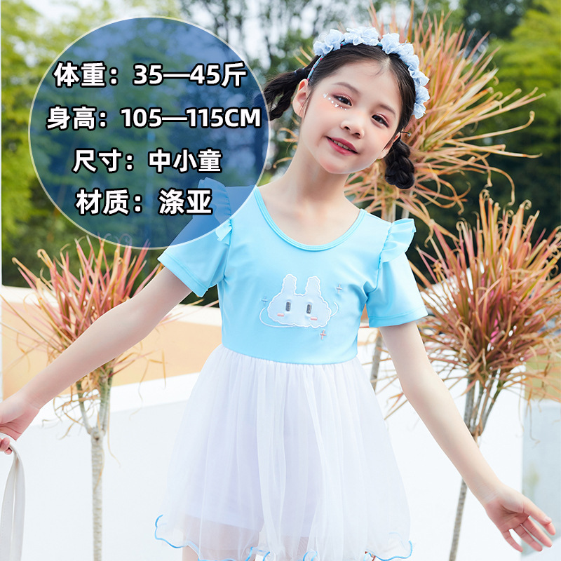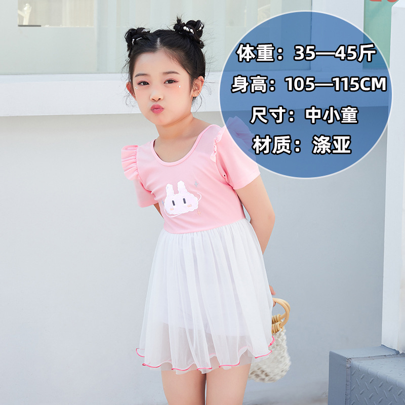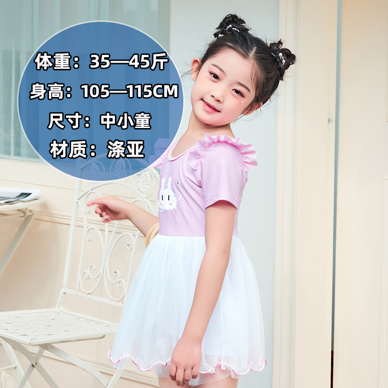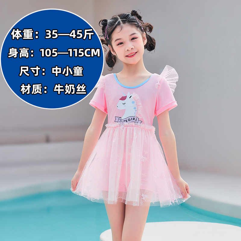 儿童泳衣女童短袖款连体套装中小童防晒沙滩可爱速干泳装女童泳衣