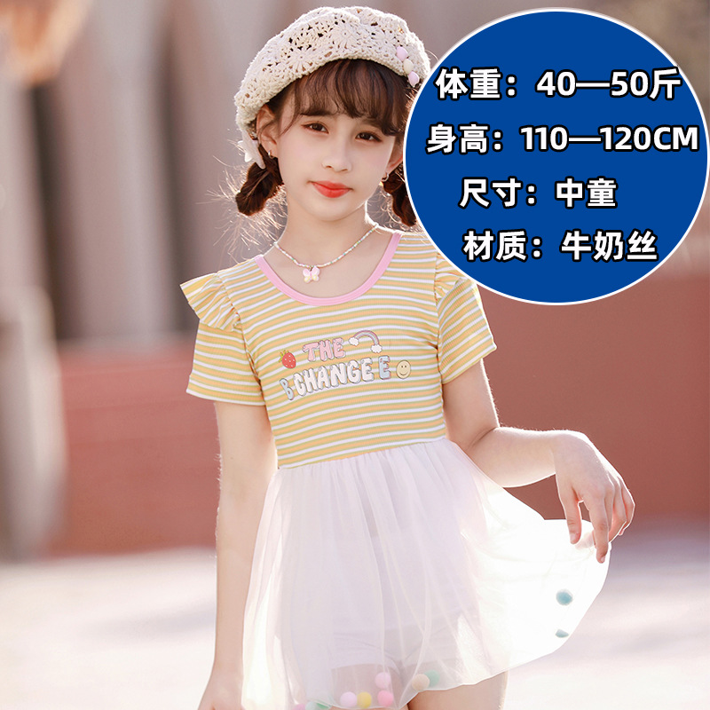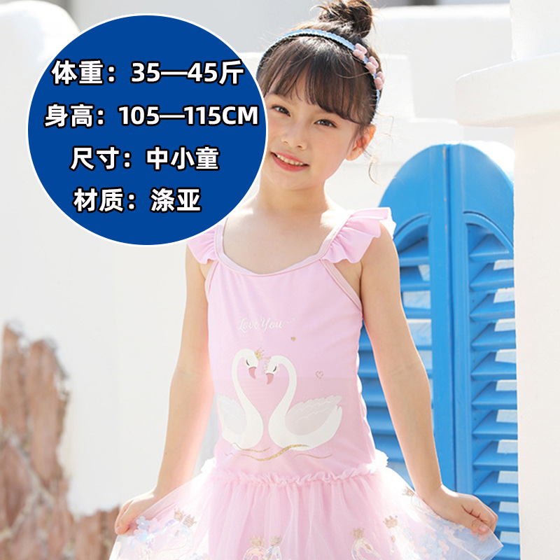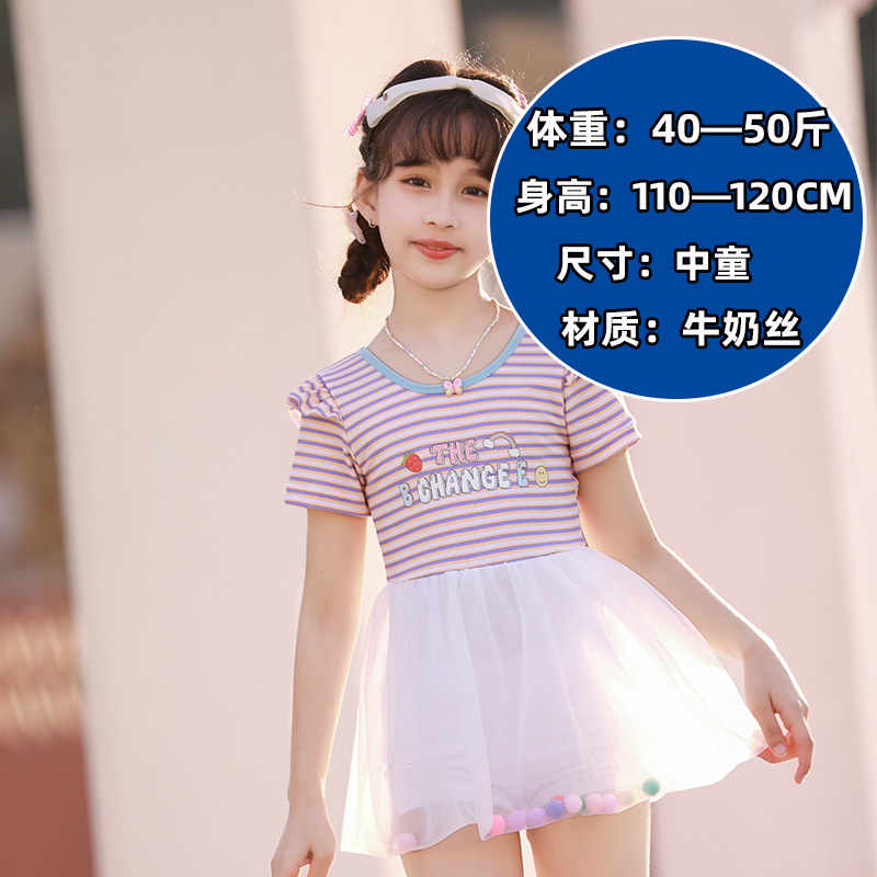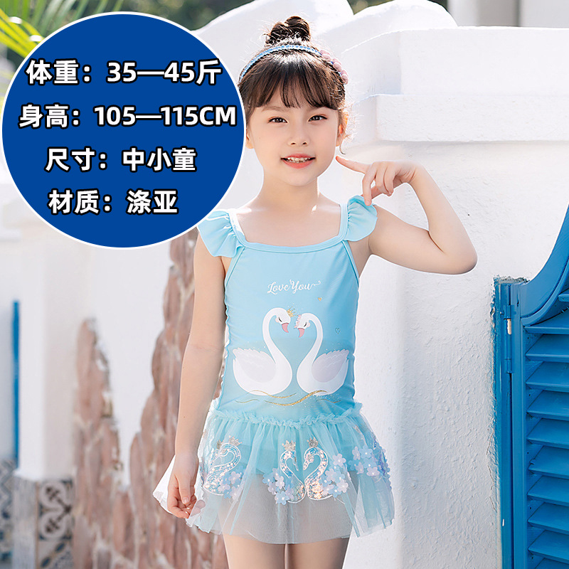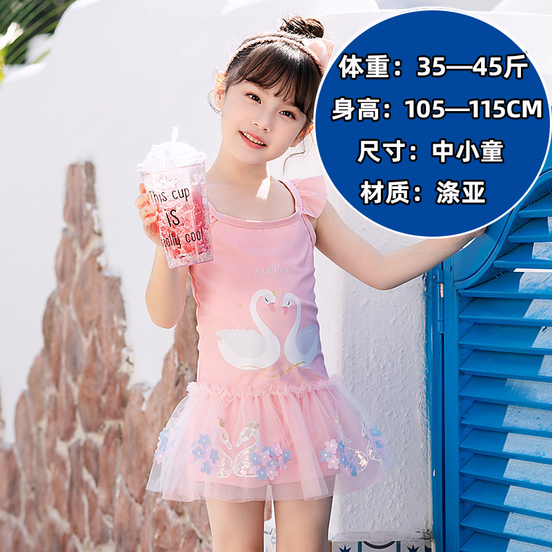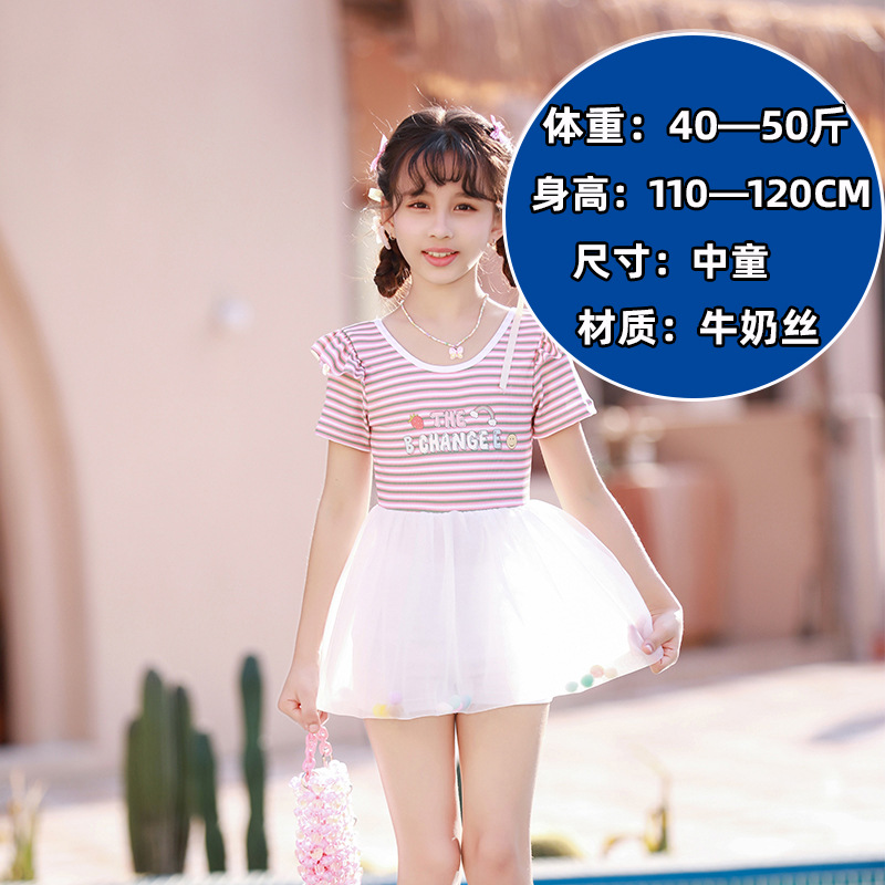 儿童泳衣女童短袖款连体套装中小童防晒沙滩可爱速干泳装女童泳衣