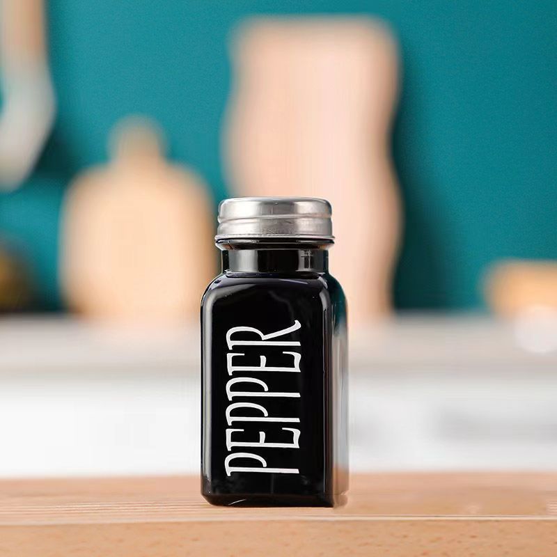 黑白调料瓶家用厨房孜然辣椒粉烧烤撒料瓶80ml盐味精玻璃调味瓶