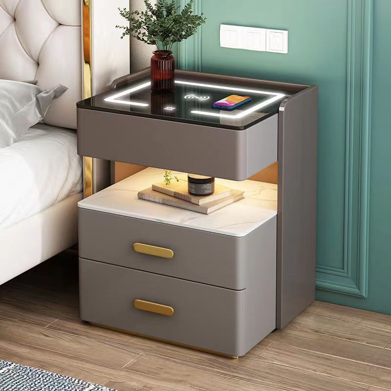 现代简约多功能智能床头柜轻奢三斗柜卧室收纳柜家用床边柜桌子