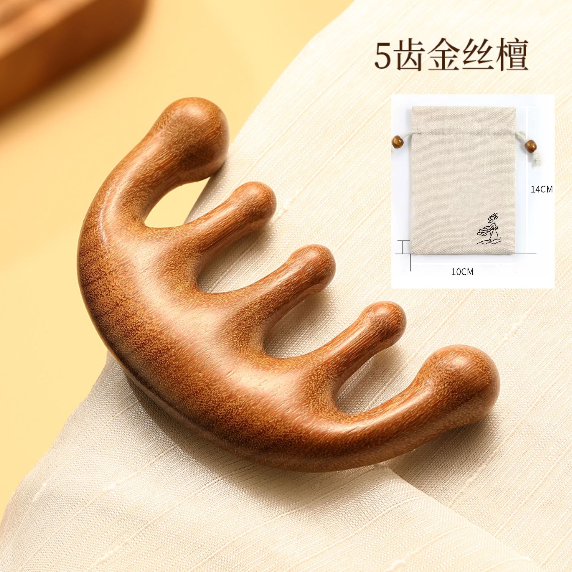 金丝檀五齿按摩梳【赠布袋】