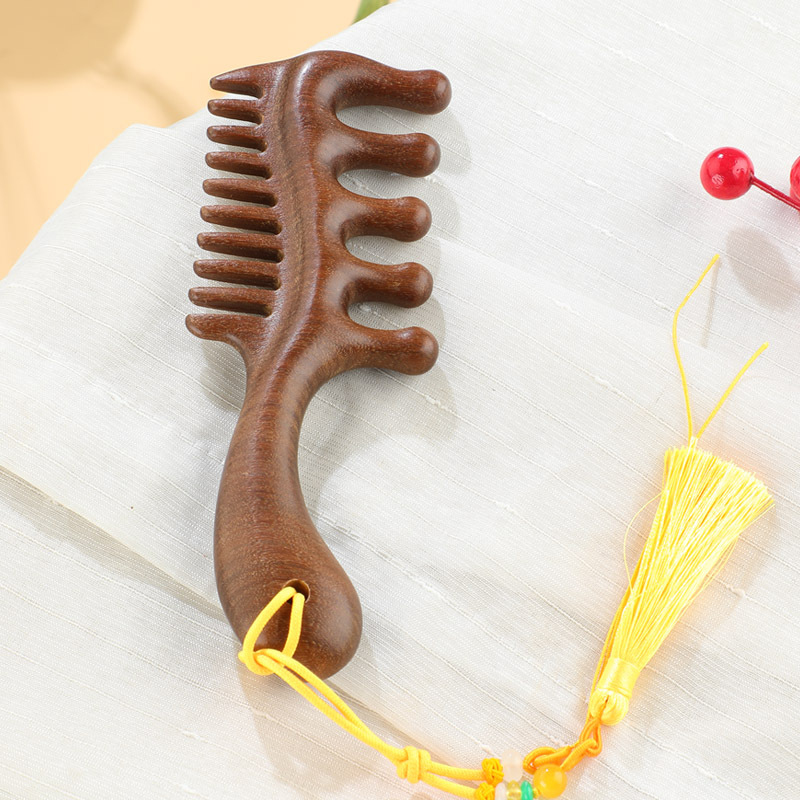 金丝檀粗齿双齿按摩梳【打孔】
