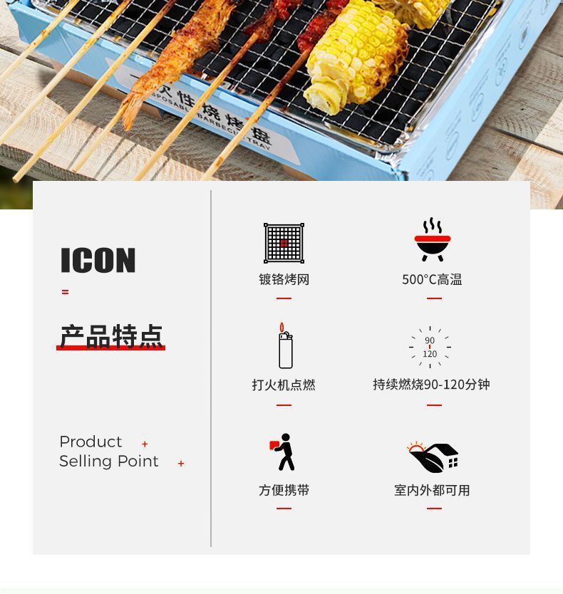 一次性便携烧烤炉家用户外露营碳盒炉子烤肉无烟长方形自助烧烤架详情16