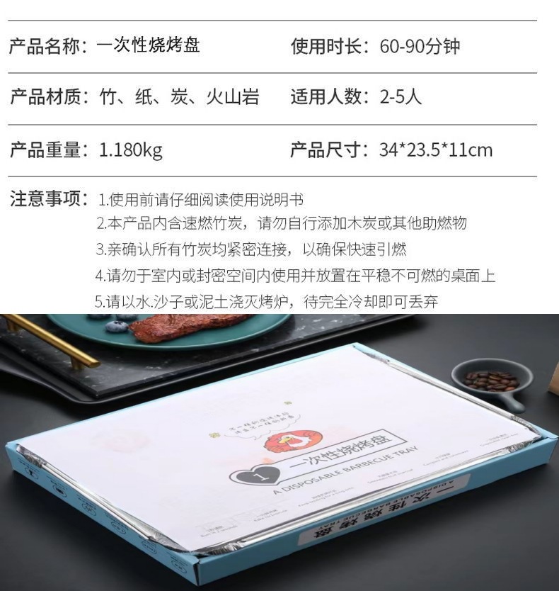 一次性便携烧烤炉家用户外露营碳盒炉子烤肉无烟长方形自助烧烤架详情14