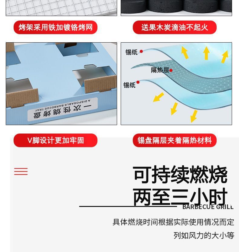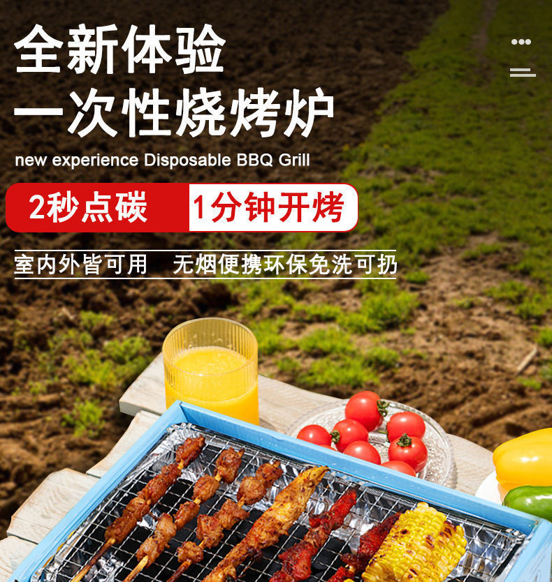 一次性便携烧烤炉家用户外露营碳盒炉子烤肉无烟长方形自助烧烤架详情67