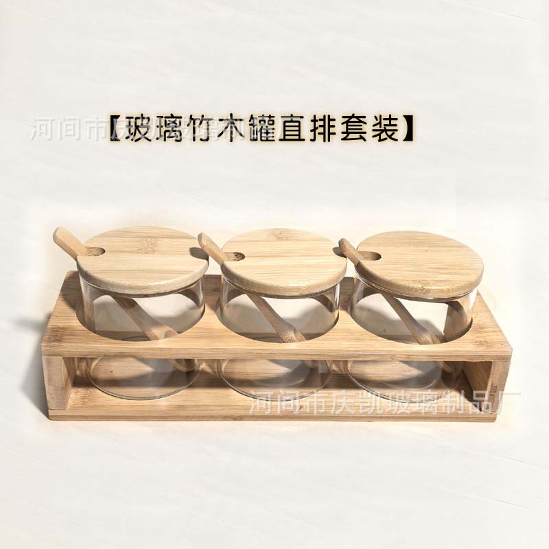 调料罐直排套装(3套瓶盖勺+双层直排木架)
