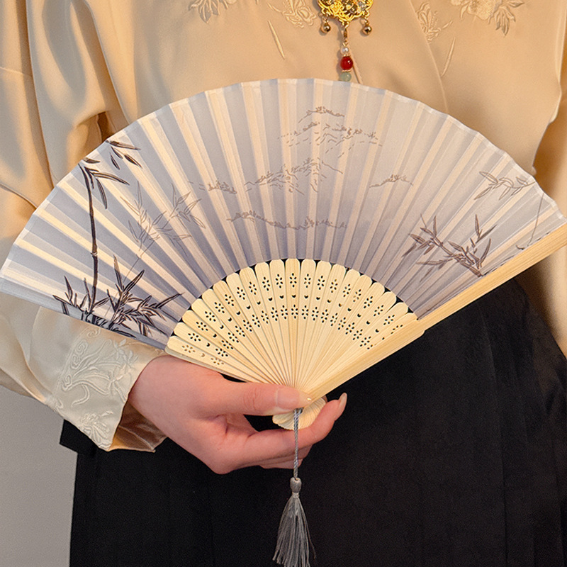 白色竹子扇子+合金流苏