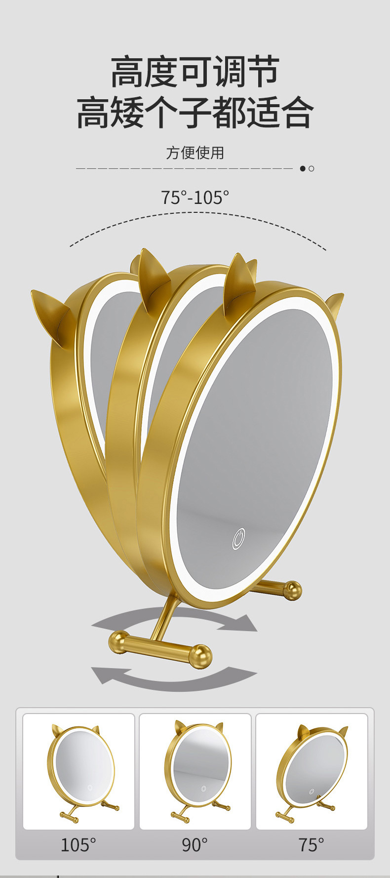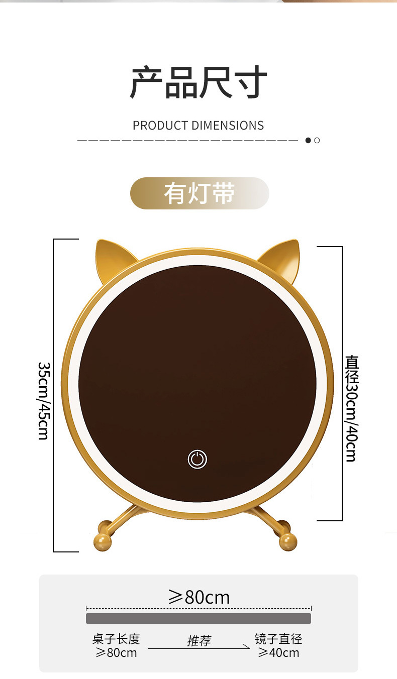 梳妆镜猫耳朵款30白色无灯