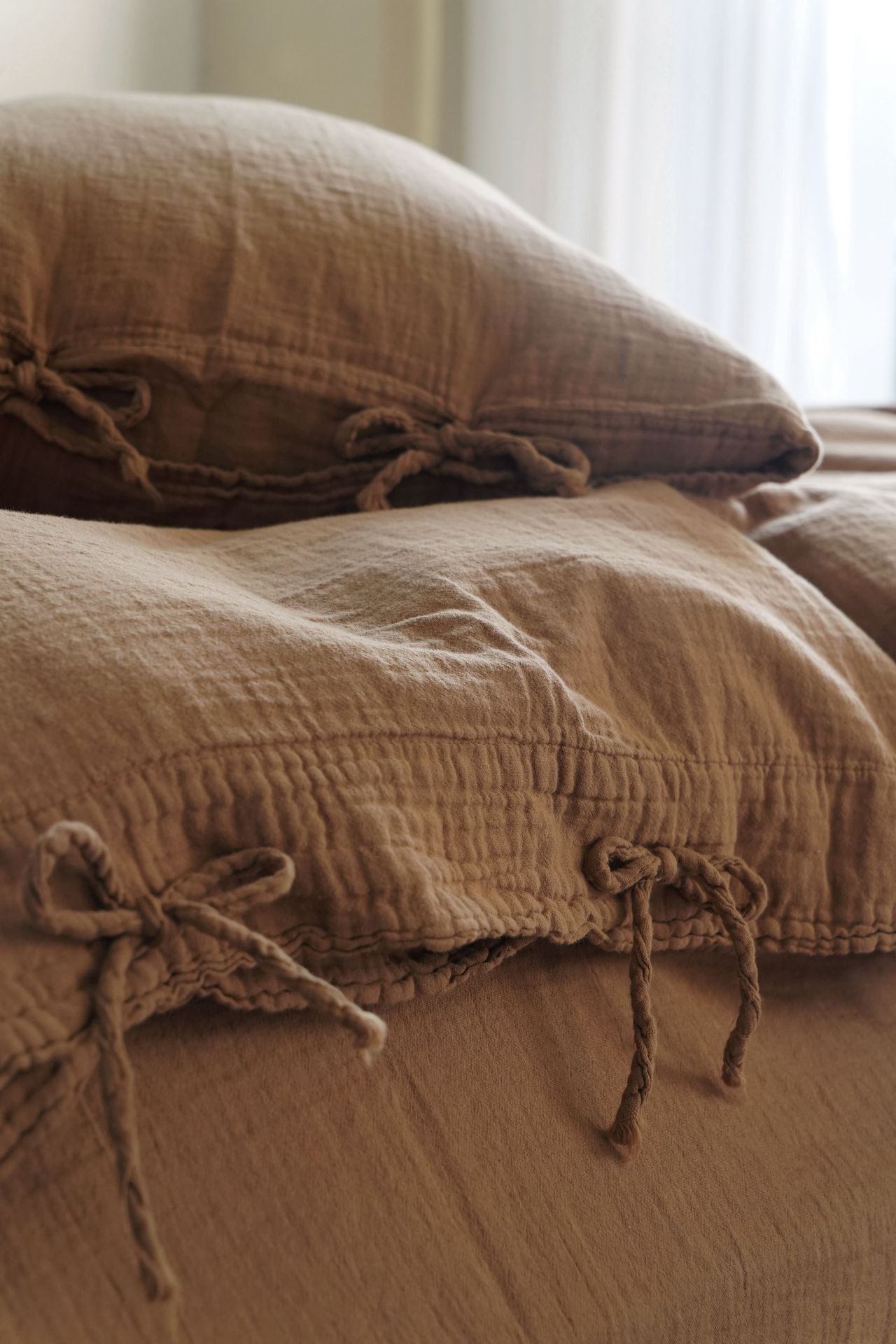 产品名称:成品染双层纱系带三件套 四件套