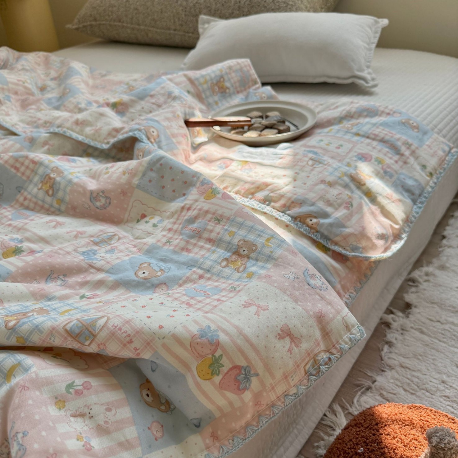 🧵面料:A类全棉双层纱☁️填充:10%大豆纤维 🧼洗涤:轻柔机洗🍉工艺:四边三角针包边🎀规格 · 重量▪1.2*1.5 (1.5斤左右)▪1.5*2.0 (2.5斤左右)▪2.0*2.3(3.5斤左右)
