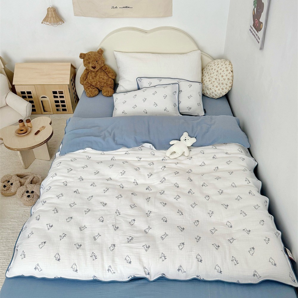 Ins双层纱单品&三件套母婴级手感如云朵般柔软:材质:母婴级双层纱 工艺:洋气嵌条数码印花规格:单被套120*150 单被套150*200