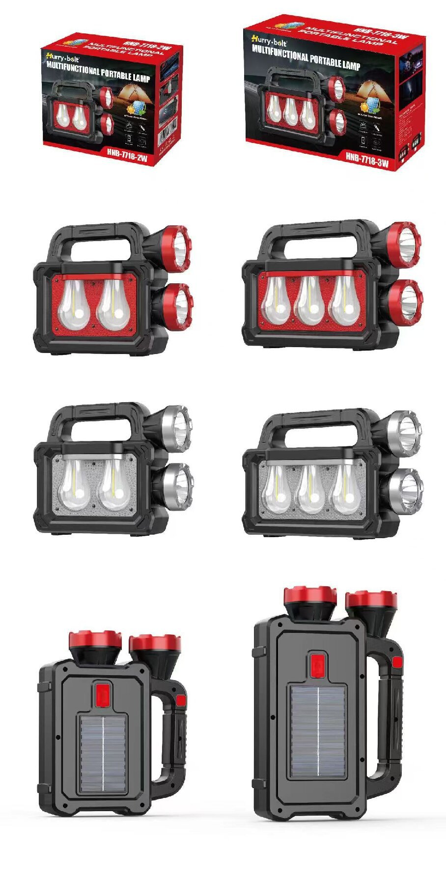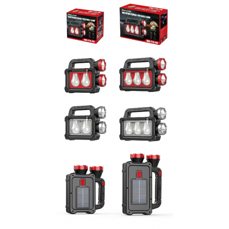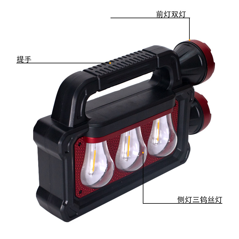 太阳能充电手提灯多功能户外野营手提式探照灯白光黄光远近双光源