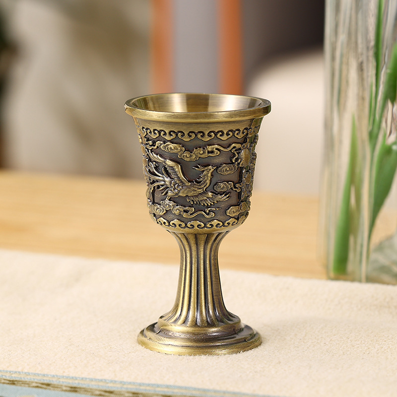 高档中式白酒杯酒具饭店家用小号一口杯金属复古轻奢高脚清酒杯