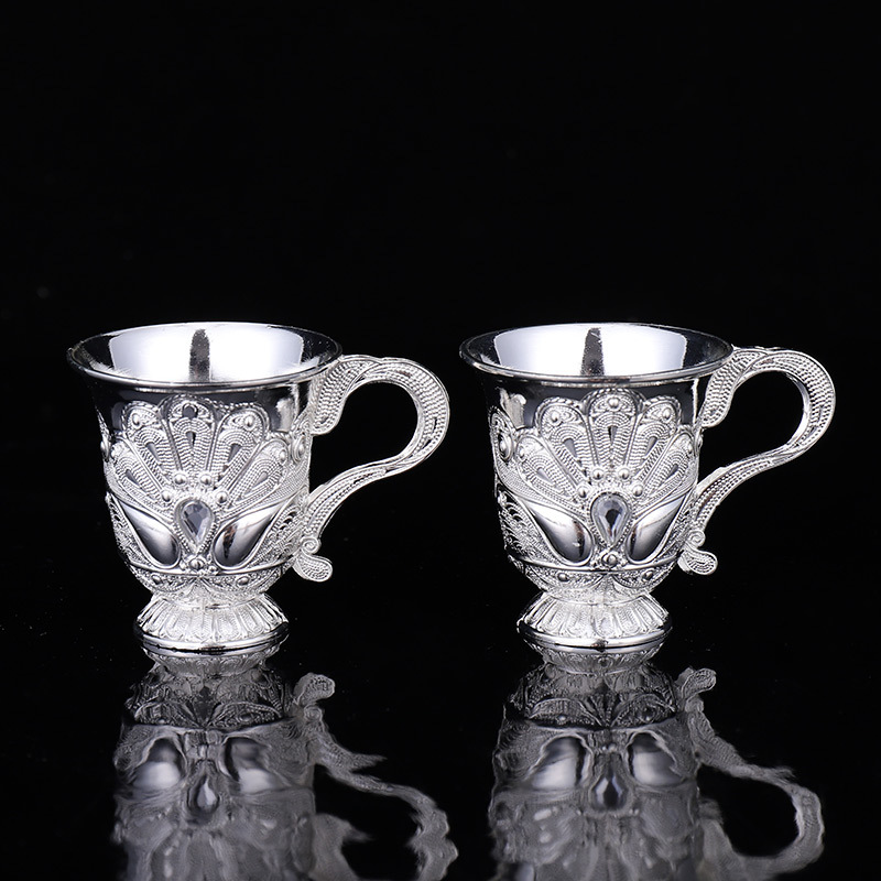 厂家直销手工鎏银酒杯家用银色茶杯半两25ml一口酒杯酒蛊节日礼品