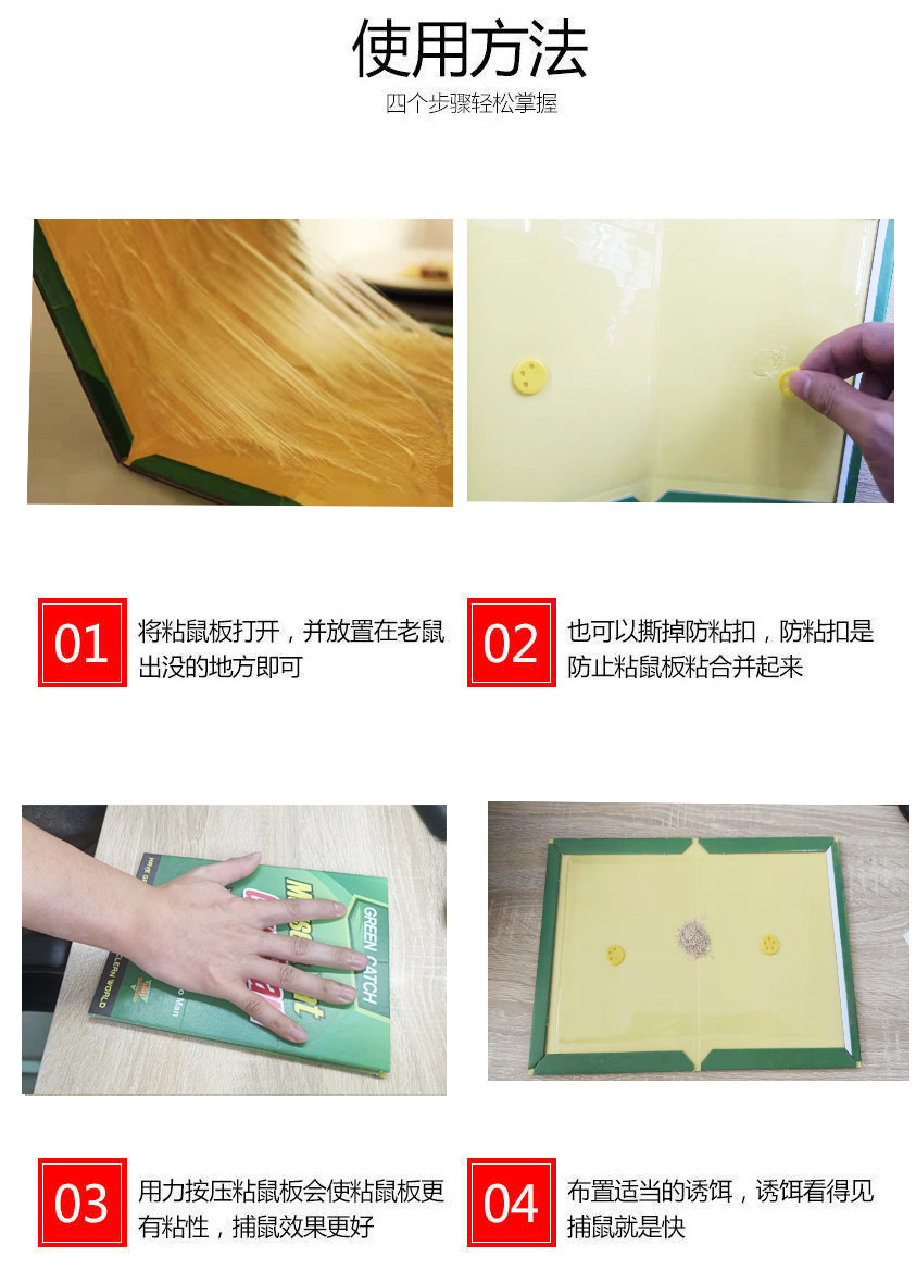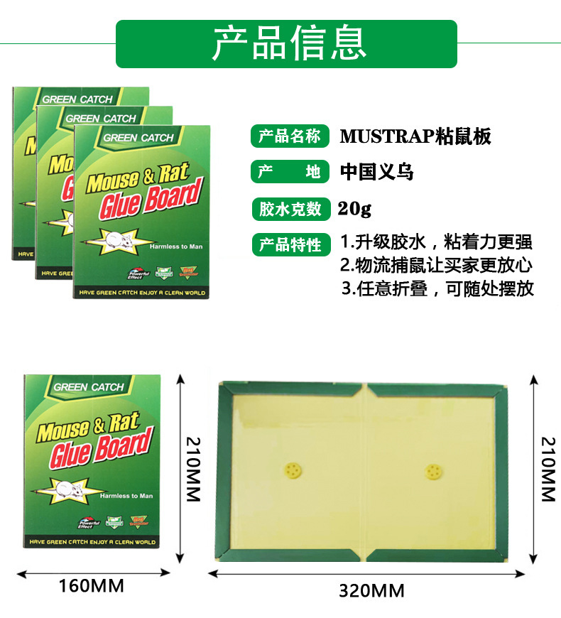 现货批发30克胶水粘鼠板强力粘鼠加厚老鼠贴引诱粘鼠捕鼠神器家用