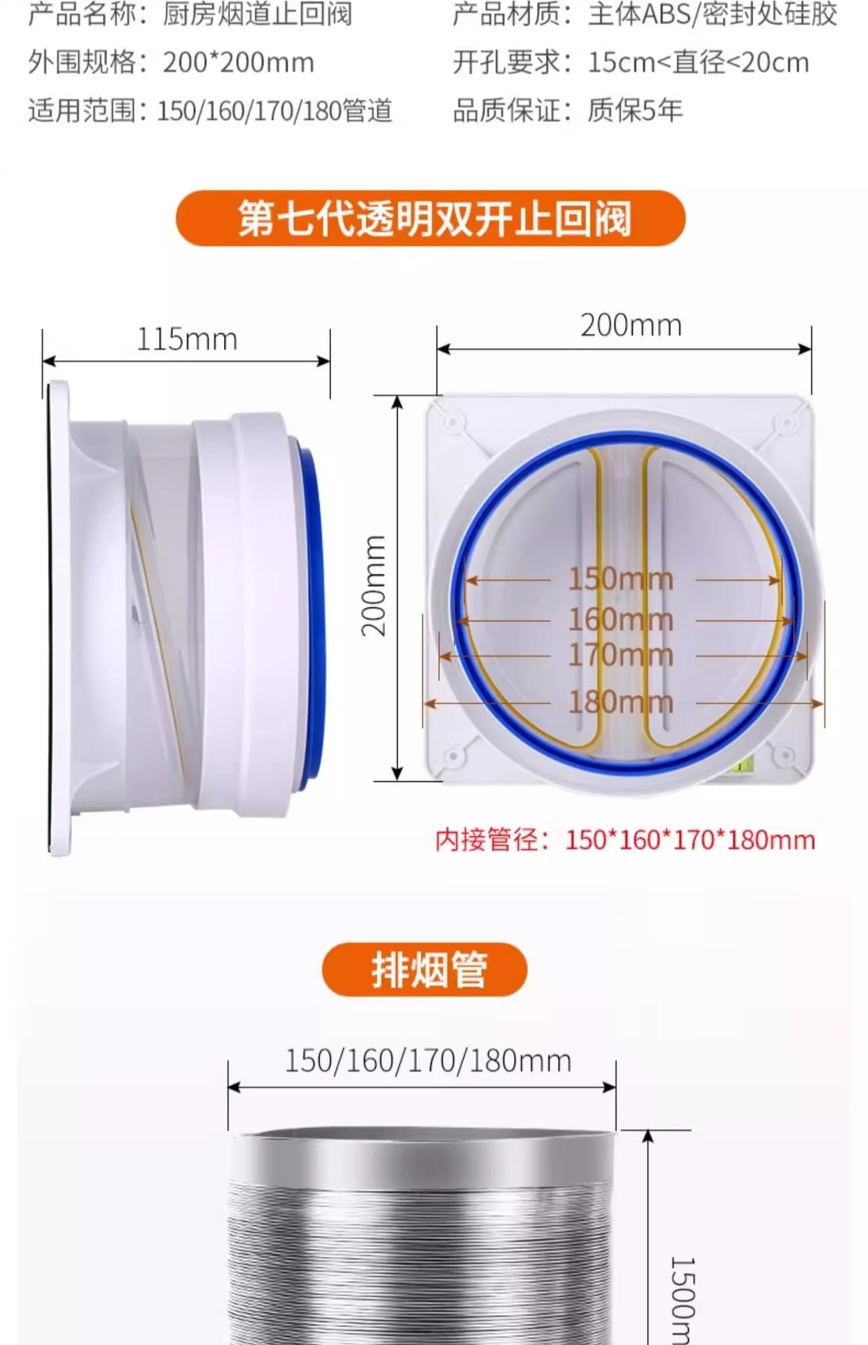 加强款 ★厨房止逆阀(150-200通用)+安装配件