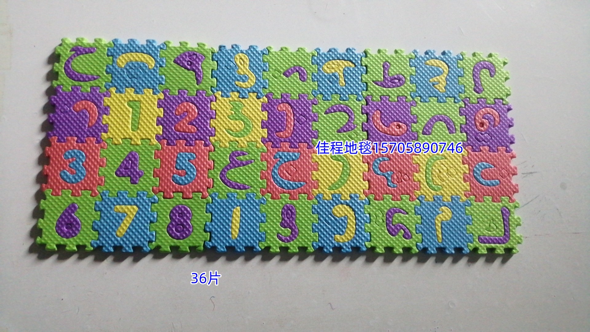 EVA拼图地垫英文字母+数字 部分可以做阿拉伯文 发泡拼图垫儿童手动拼图小地垫 有多个尺寸可以选 一包是36片装 26个字母+10个数字 收缩膜 混颜色打包