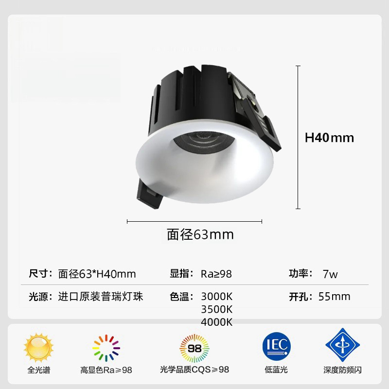 射灯款弧面无边框-白杯-55开孔-7w