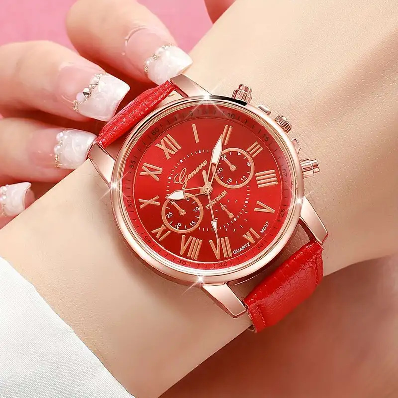 跨境引流款女士皮带手表日内瓦石英表皮带时尚女款女表罗马刻度手