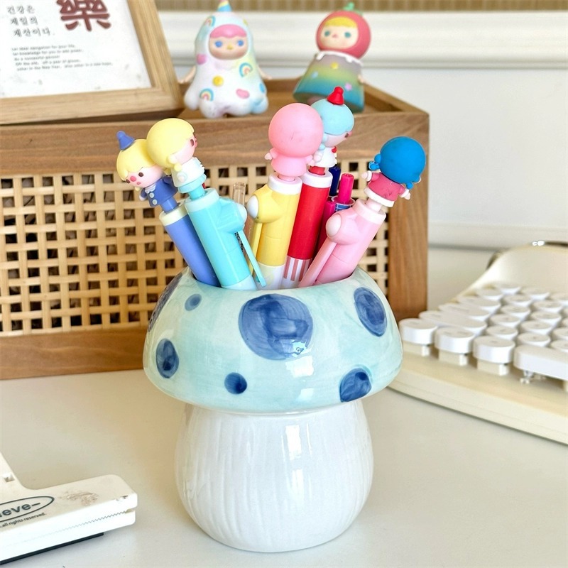 蓝色蘑菇笔筒