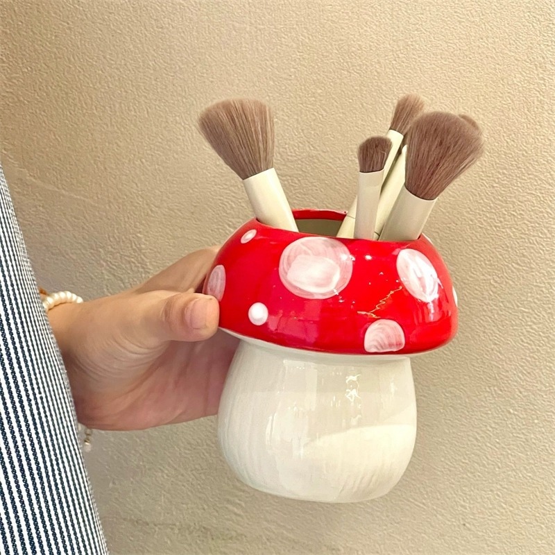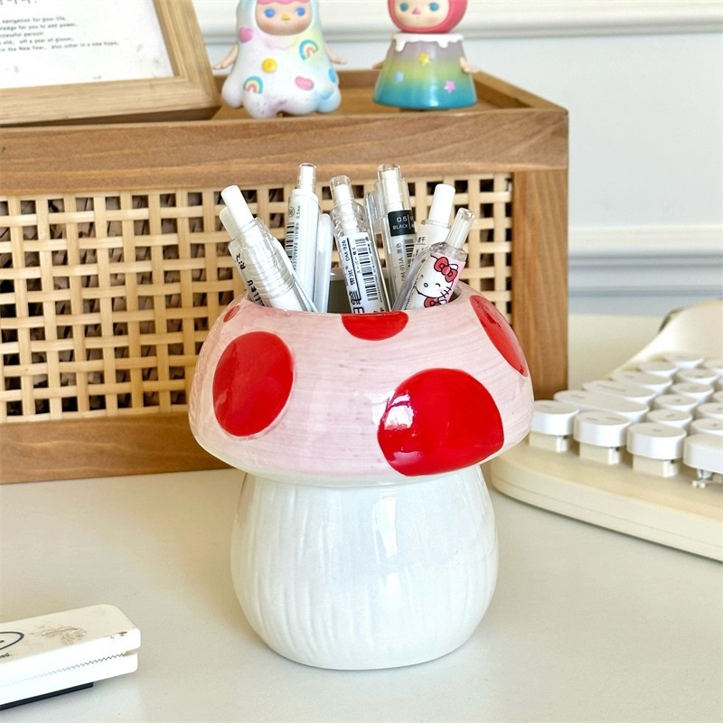红色蘑菇笔筒