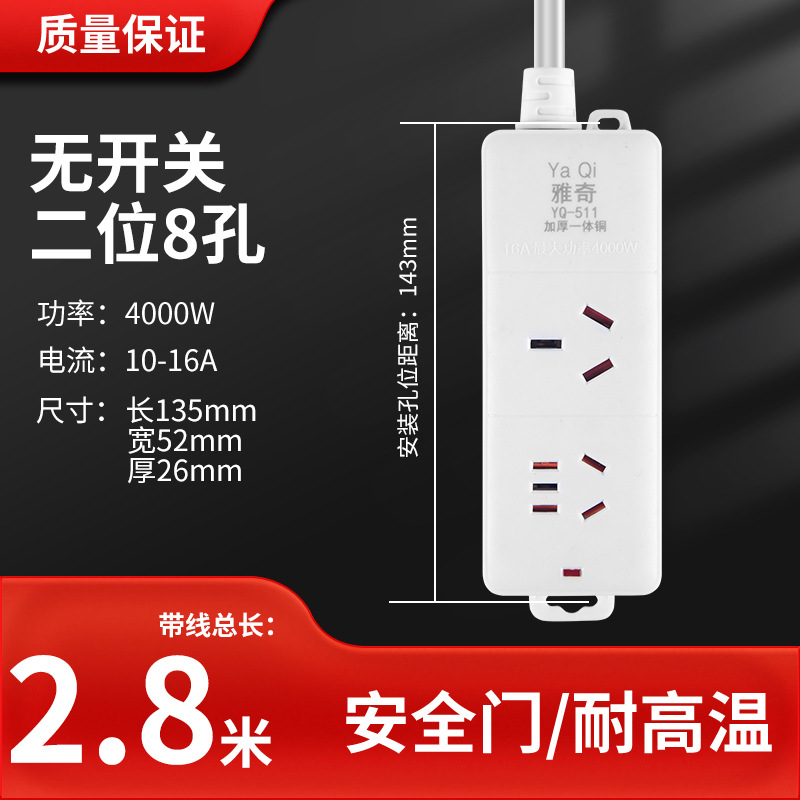 纯白插座二位8孔(无开关)*带2.8米线