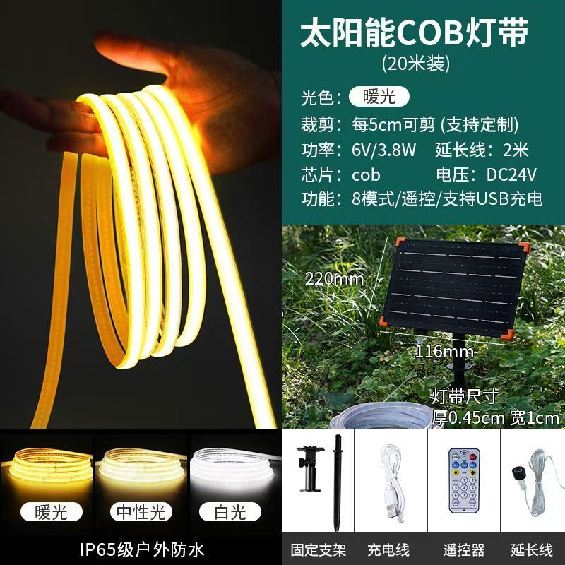 【经济款】太阳能COB灯带-20米6400灯