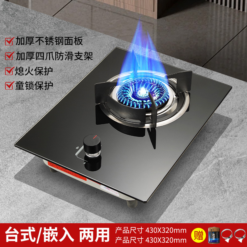 顶配定时九腔猛火-钢化玻璃面板-防风炉架