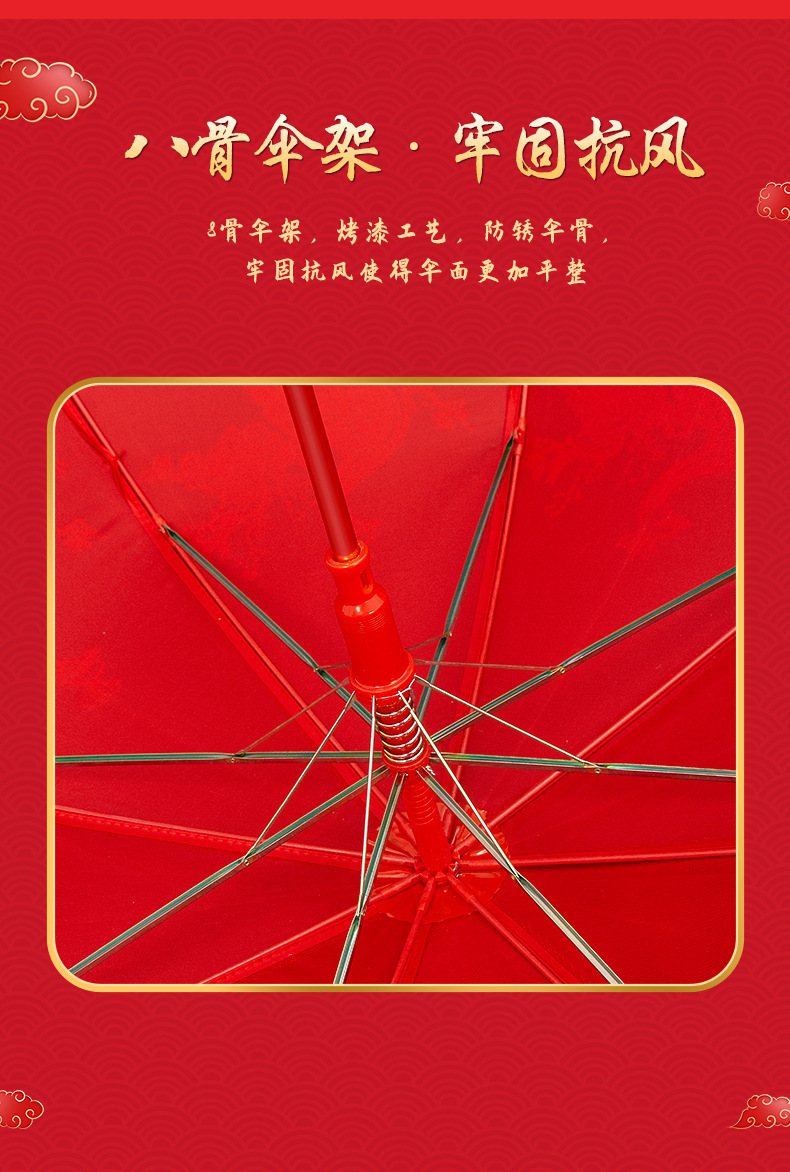 店长推荐(龙凤双喜)弯柄新娘伞双层绣花