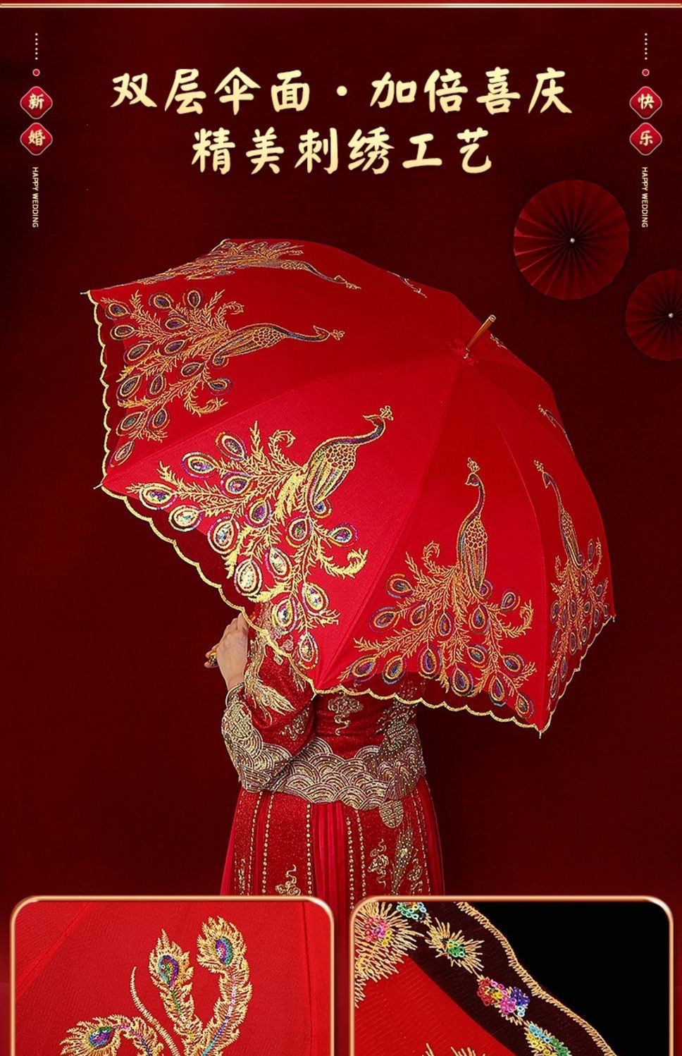 店长推荐(鸾凤和鸣)弯柄新娘伞双层绣花
