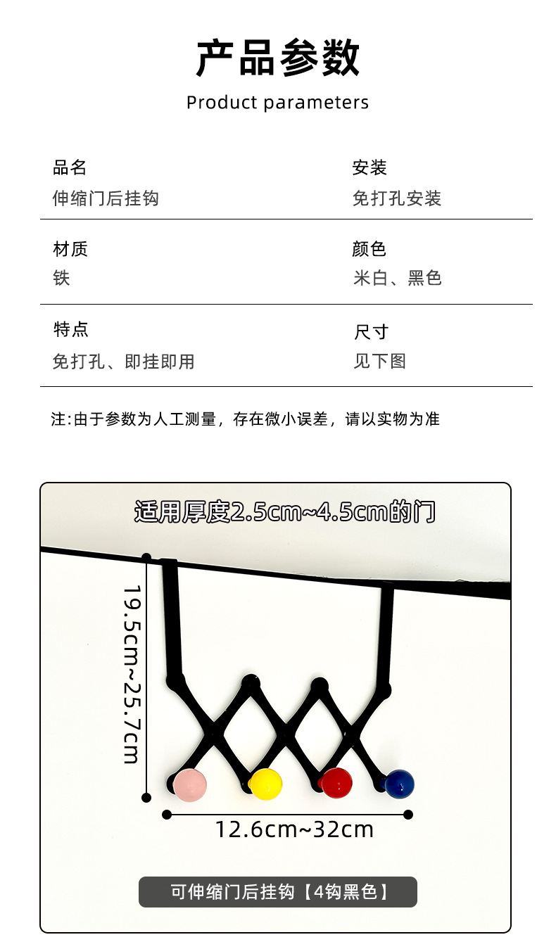 可伸缩门后挂钩【4钩米白色】