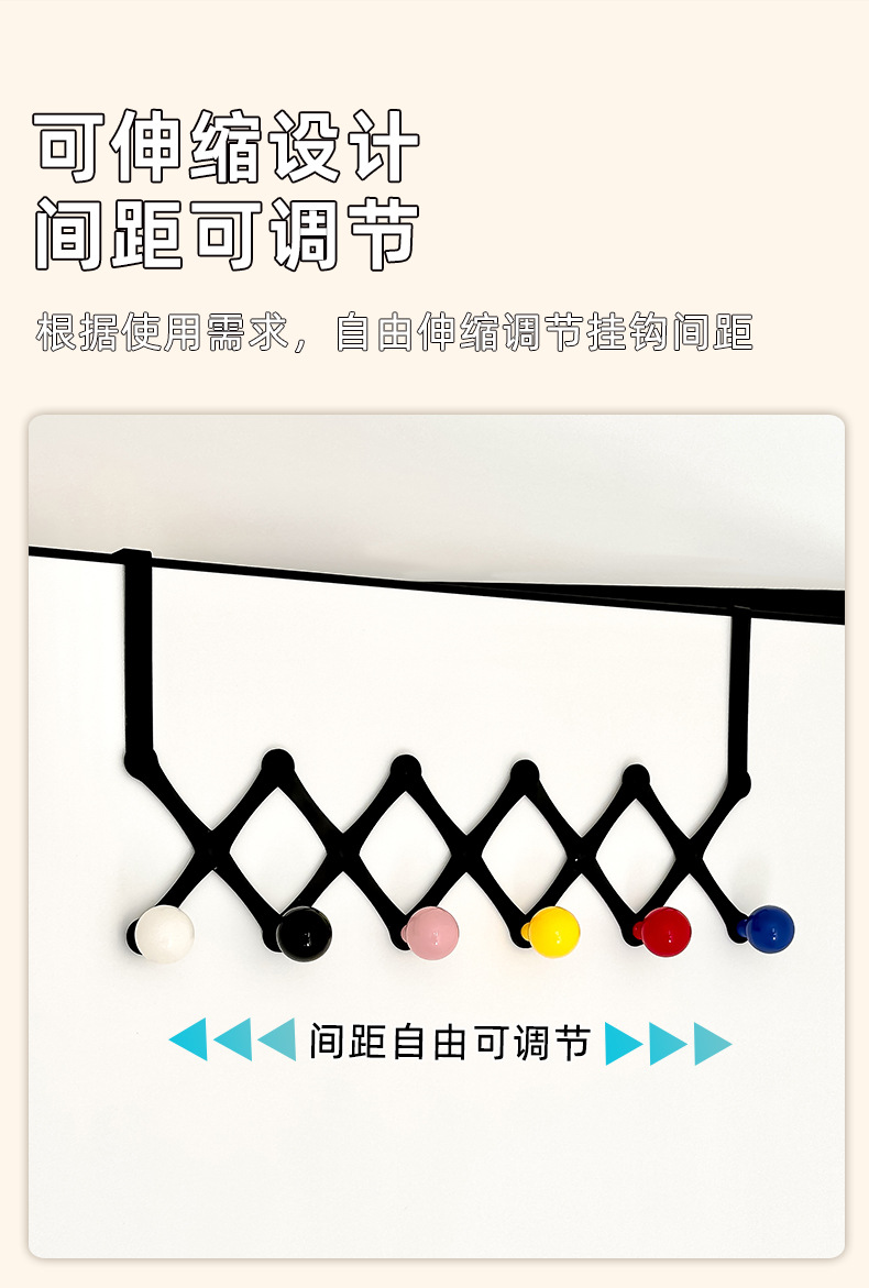可伸缩门后挂钩【6钩黑色】