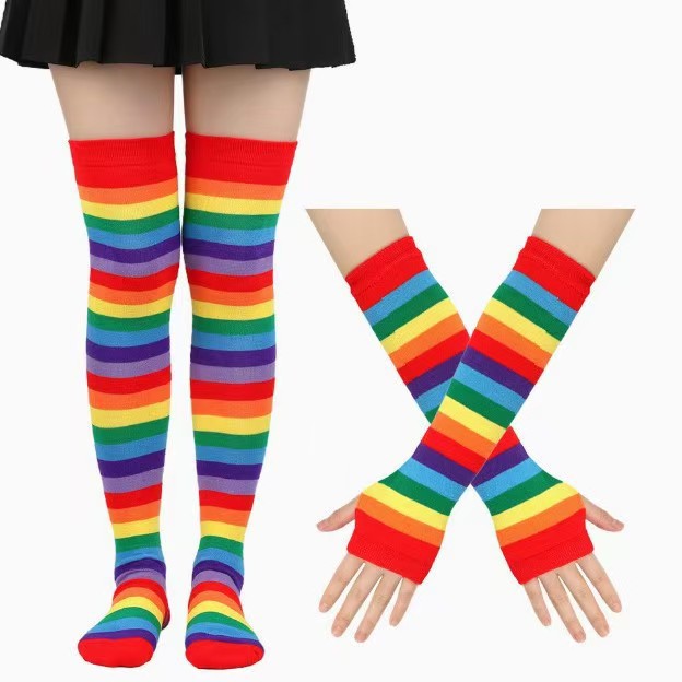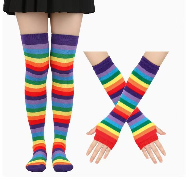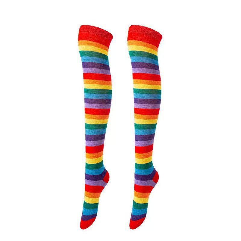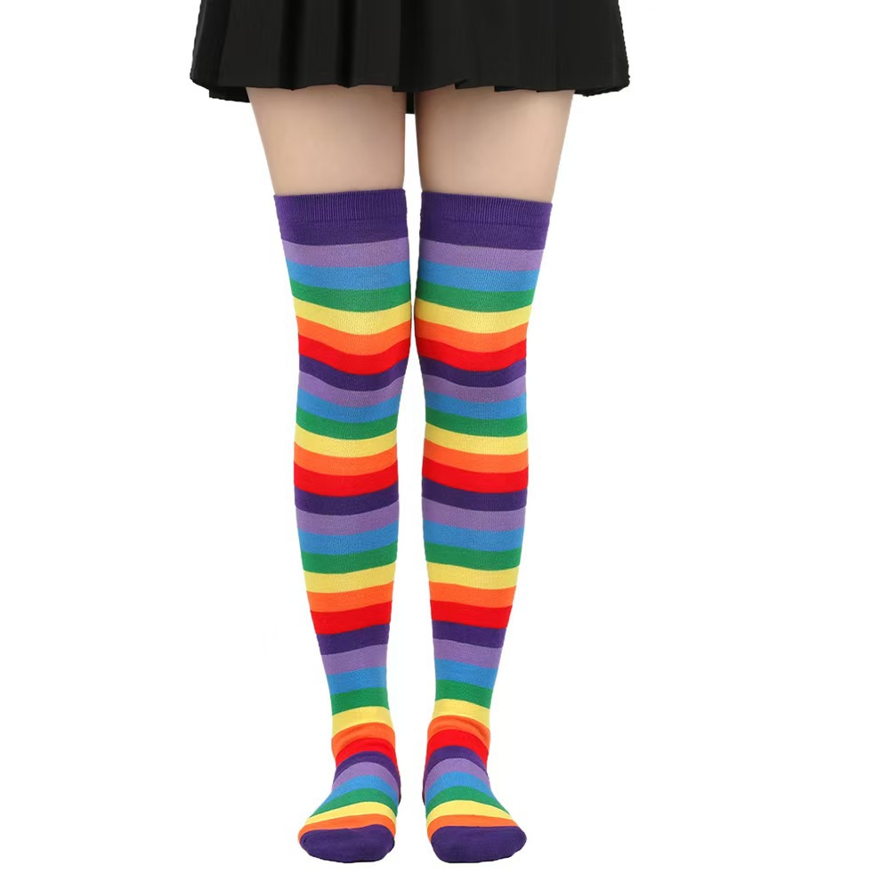紫罗口彩虹过膝袜