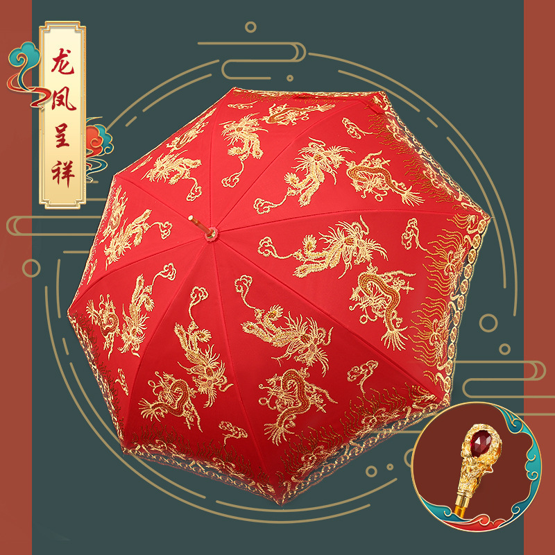 【高奢金色弯钩伞】龙凤呈祥-刺绣双层