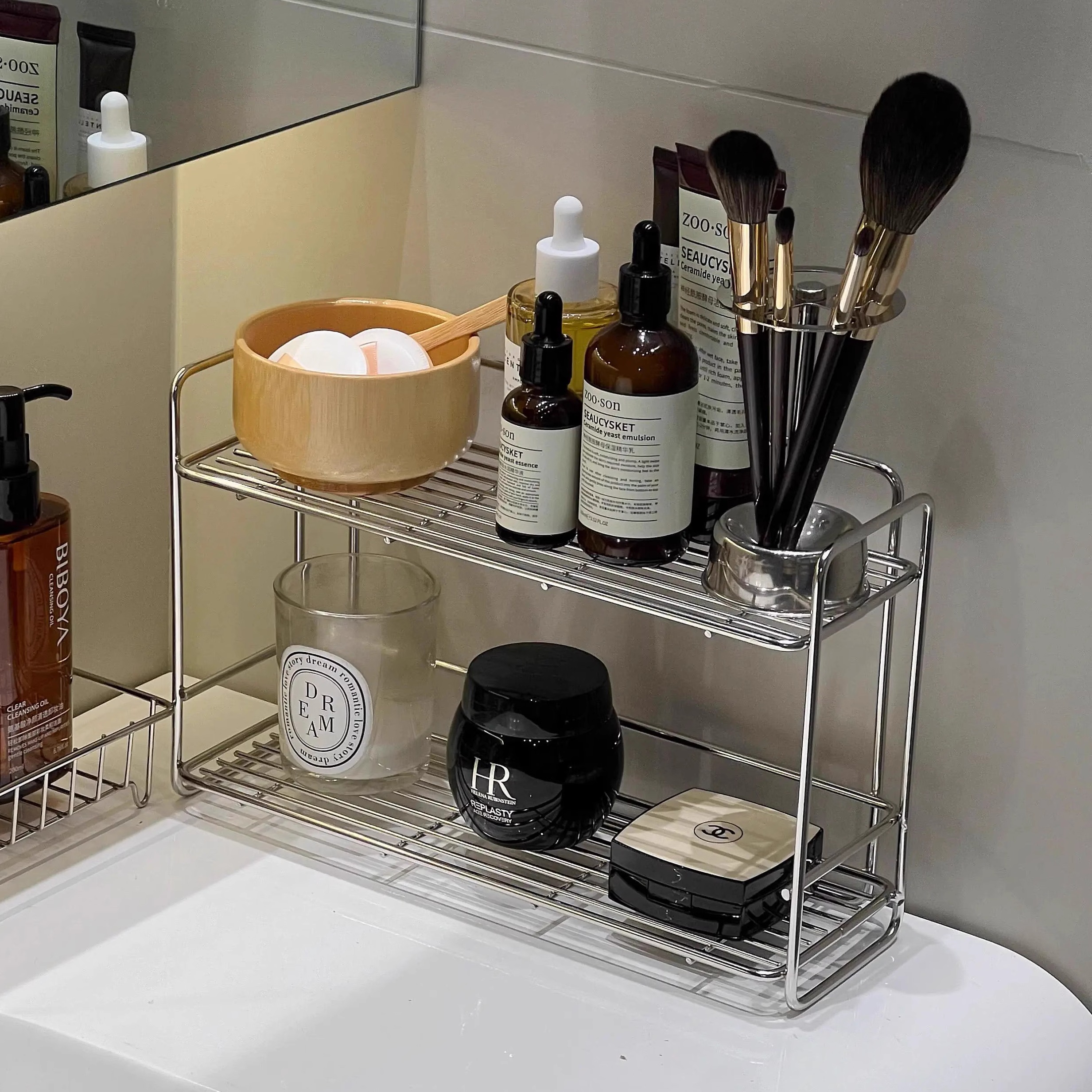洗漱台收纳架桌面收纳盒沥水置物不锈钢化妆品筐篮铁艺卫生间浴室
