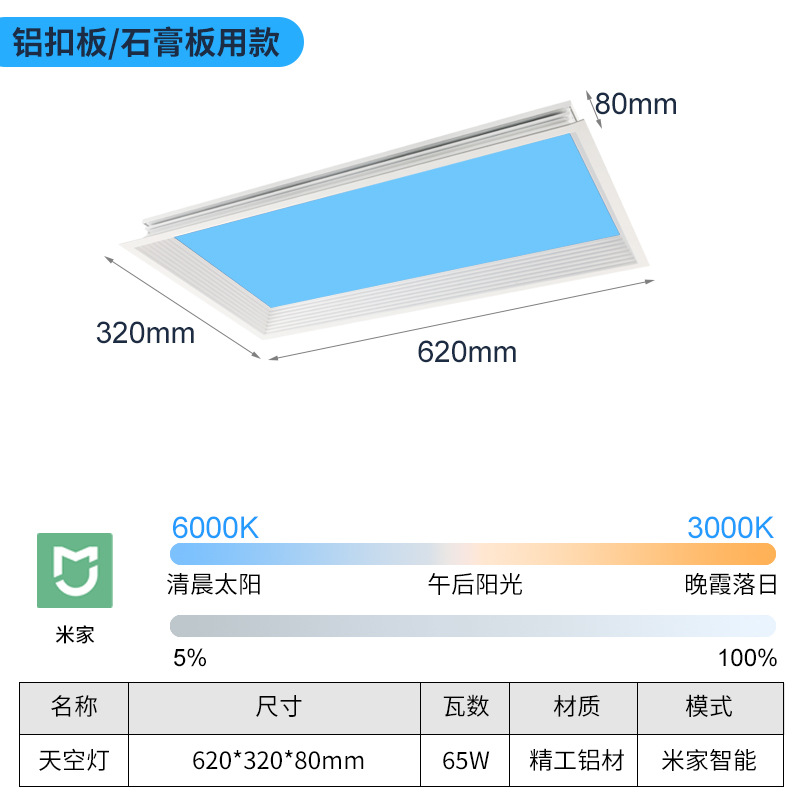 【嵌入石膏顶用】【蓝天款】300*600 米家智能