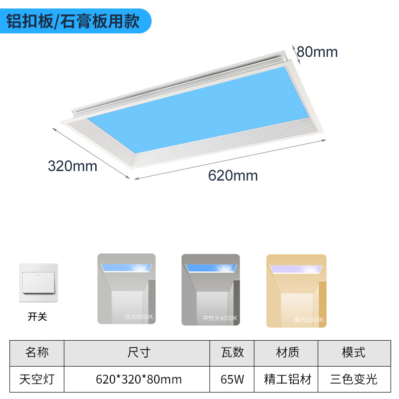 【嵌入石膏顶用】【蓝天款】300*600 三色变光