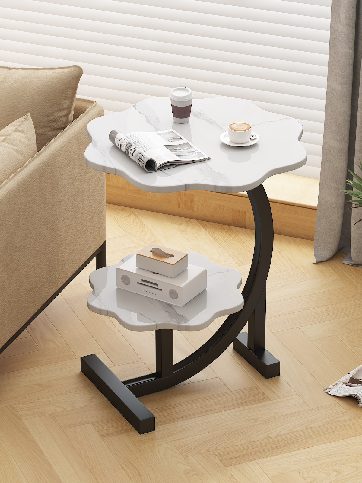 云朵款⭐白理石纹+黑架+双层置物