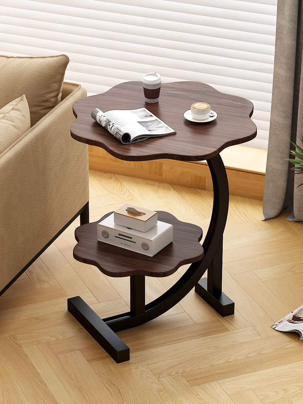 云朵款⭐胡桃色+黑架+双层置物