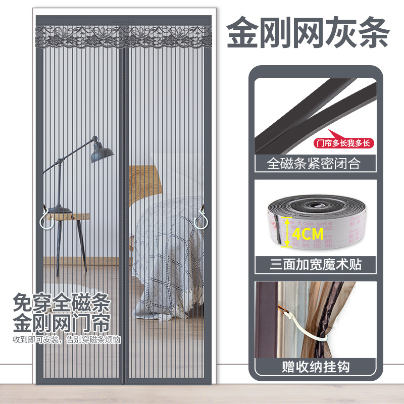 【整根全磁条】金刚网条纹灰色【四周加宽+大坠块+收纳挂钩】