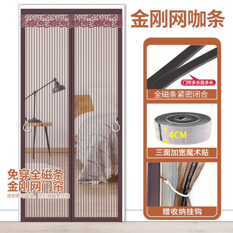【整根全磁条】金刚网条纹咖啡色【四周加宽+大配重+收纳挂钩】