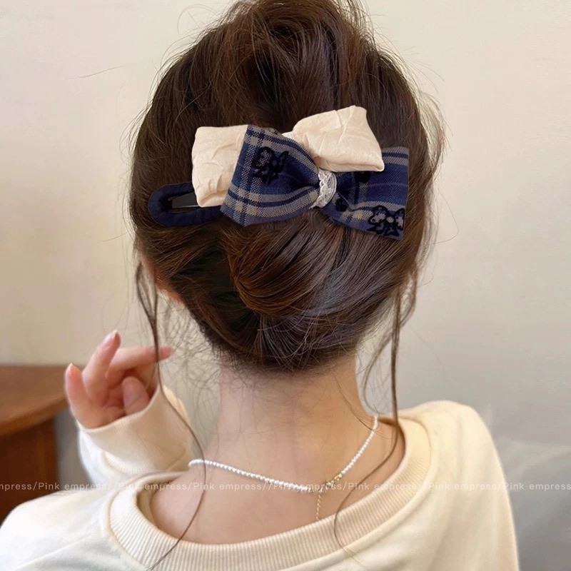 19#米+蓝格双蝴蝶结约9cm-夹子约11cm