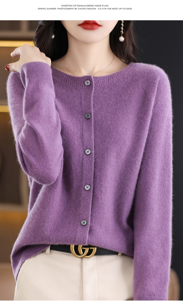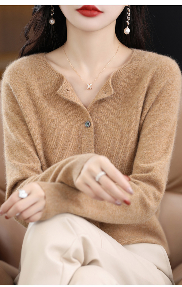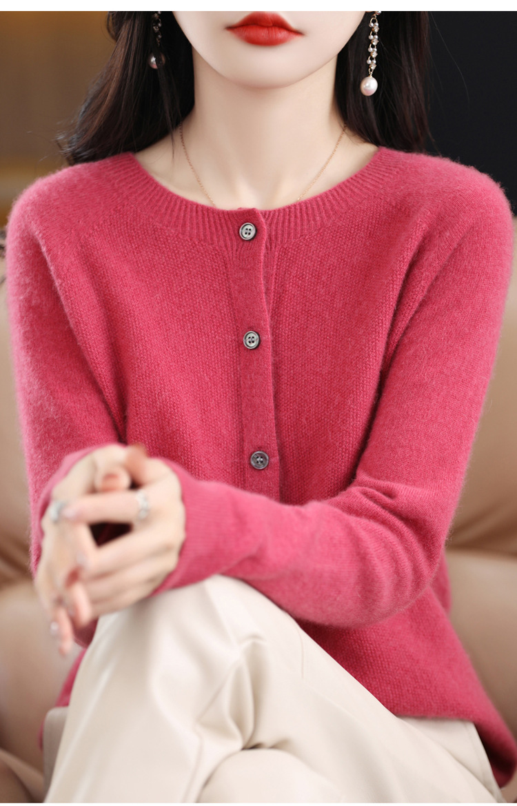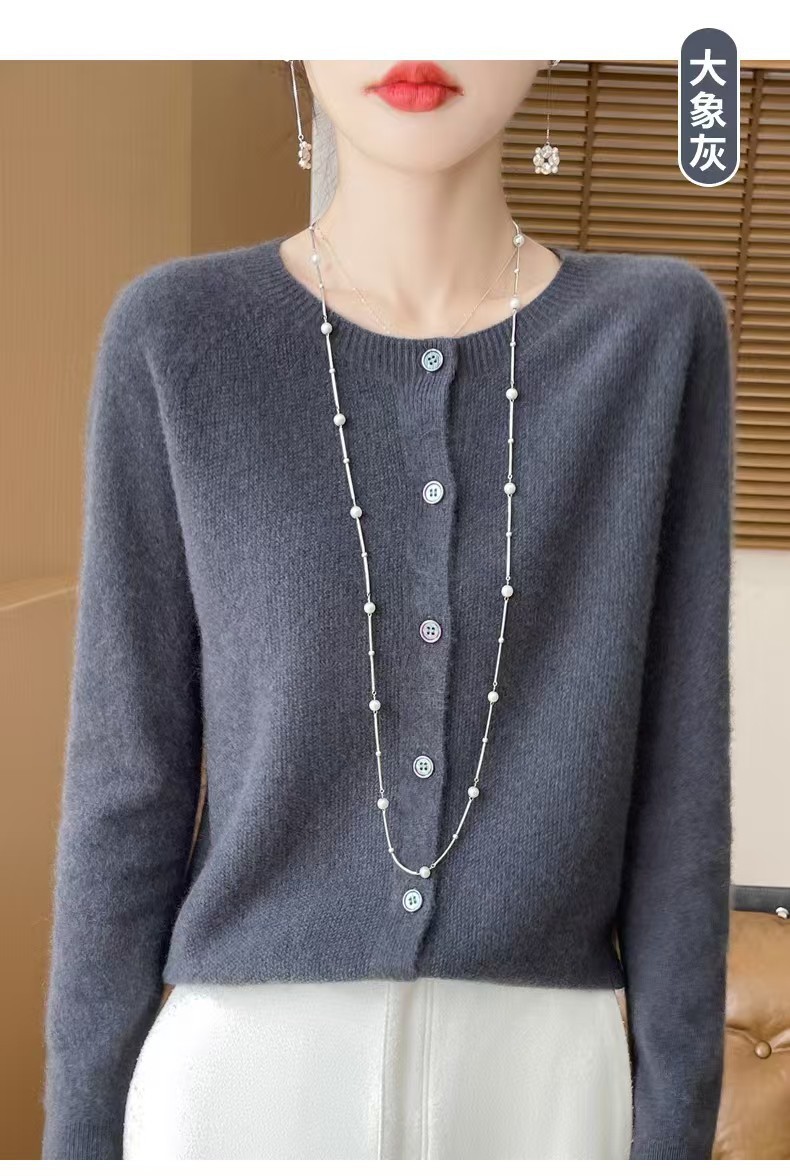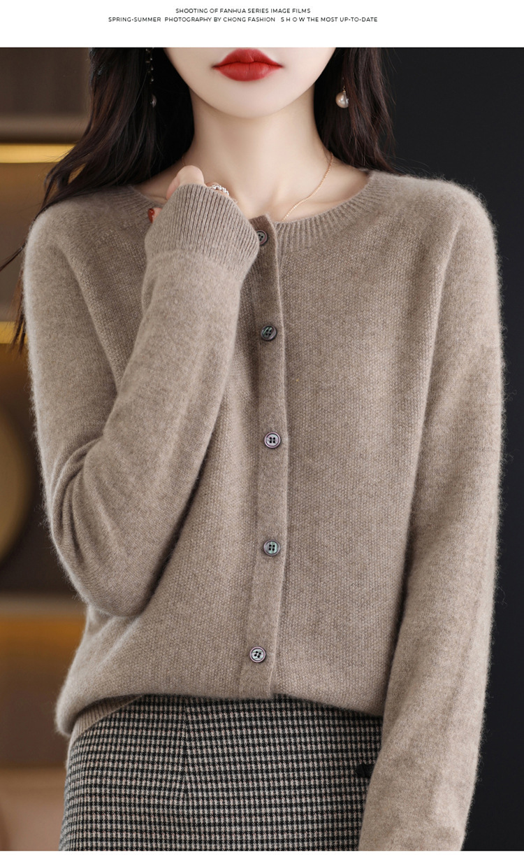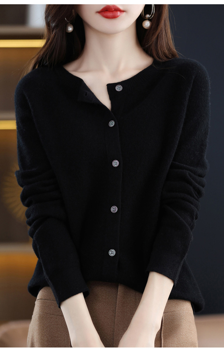 24春秋新款100羊毛衫女一线成衣毛衣开衫纯色休闲羊毛针织衫外套