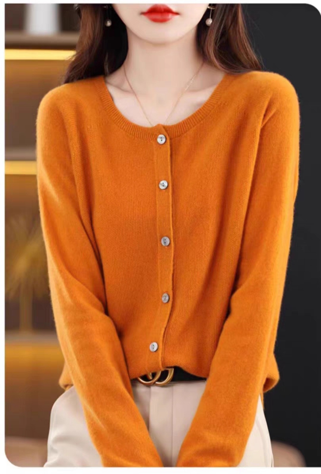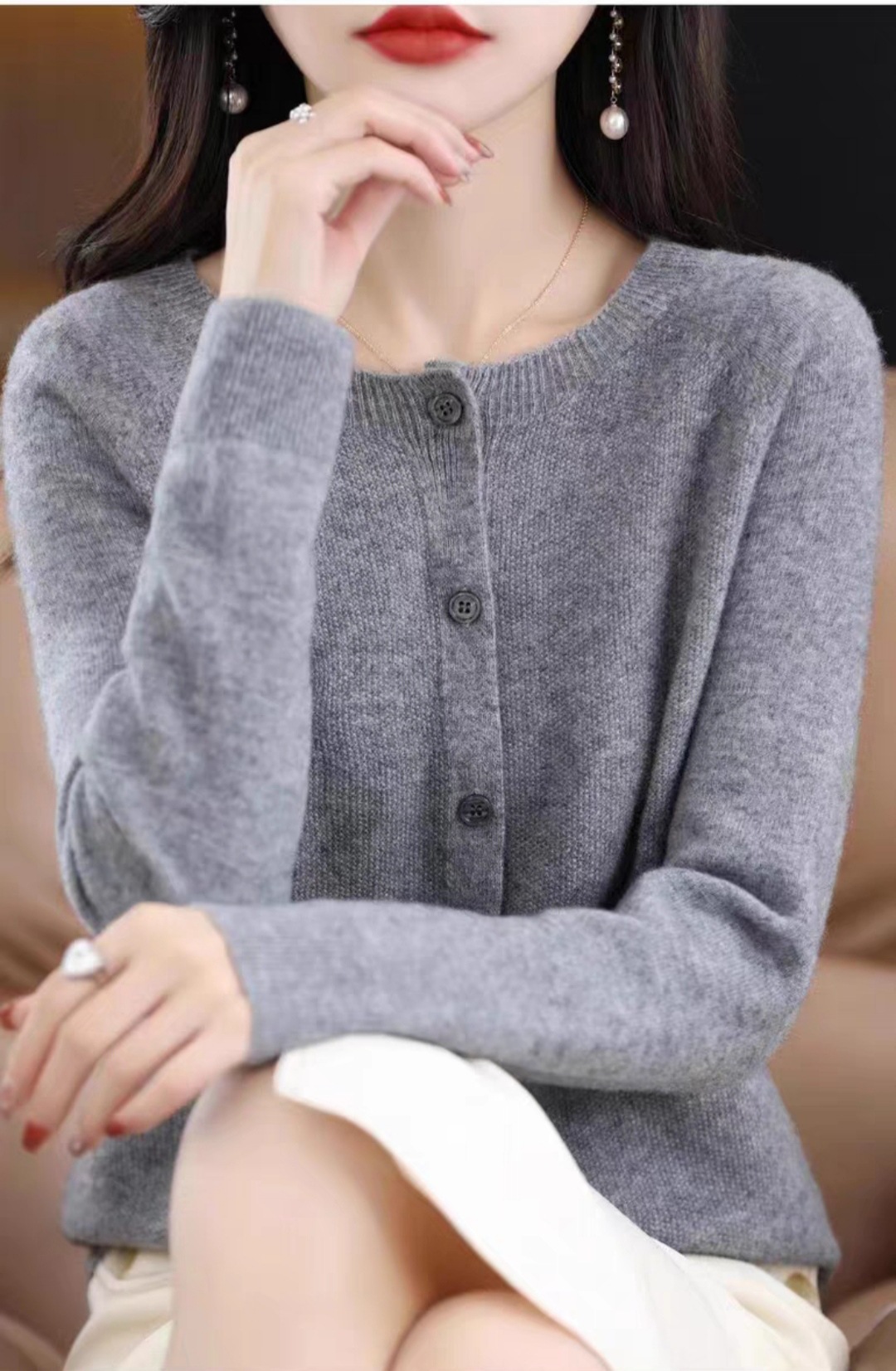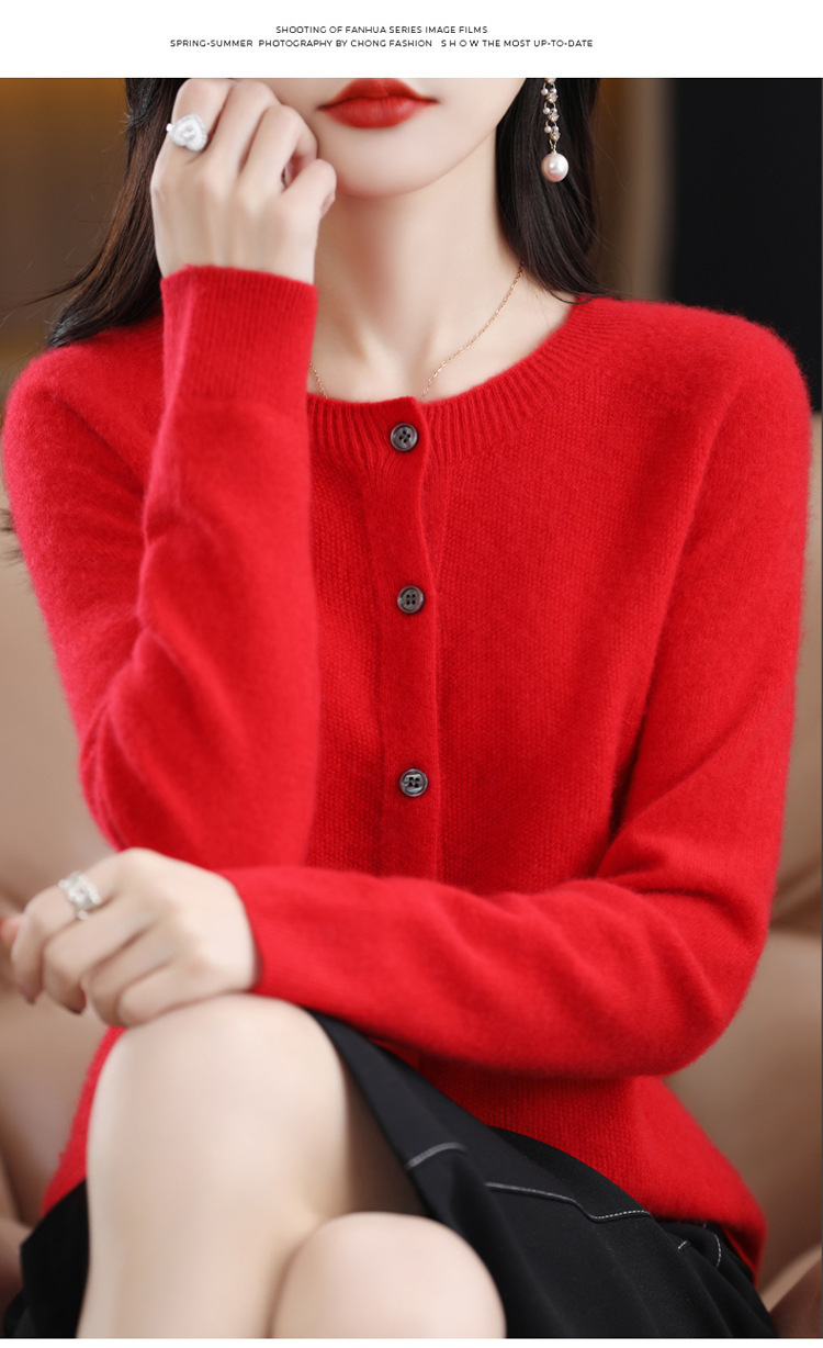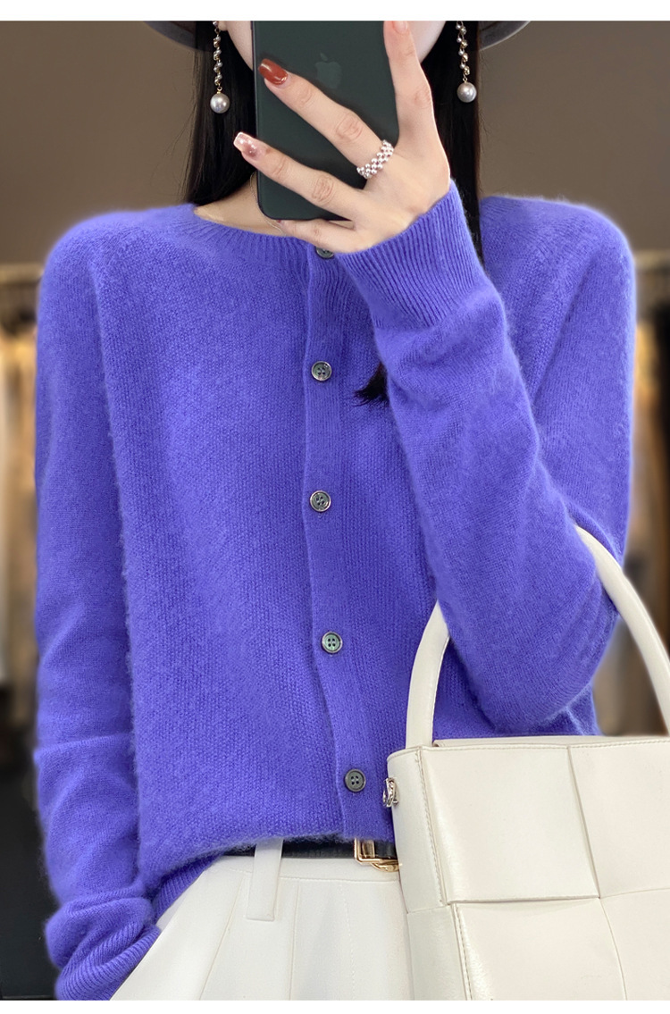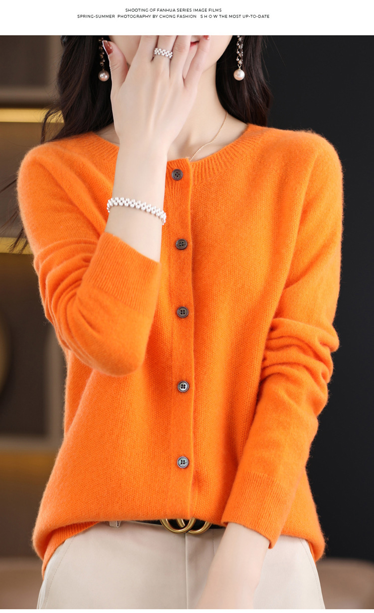 24春秋新款100羊毛衫女一线成衣毛衣开衫纯色休闲羊毛针织衫外套