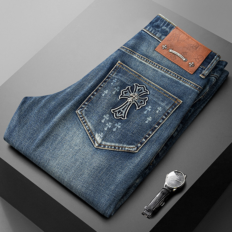 潮牌薄款复古蓝牛仔裤男士夏季高级感潮流修身直筒弹力休闲长裤男
