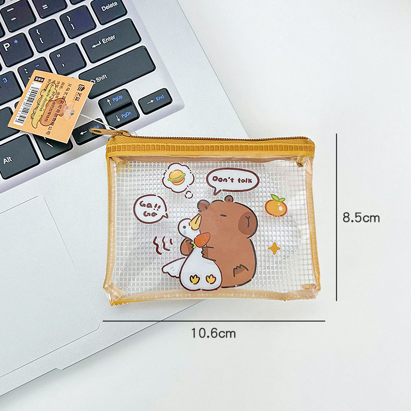 卡皮巴拉零钱包可爱PVC透明零钱袋卡通学生便携收纳袋水豚口红包