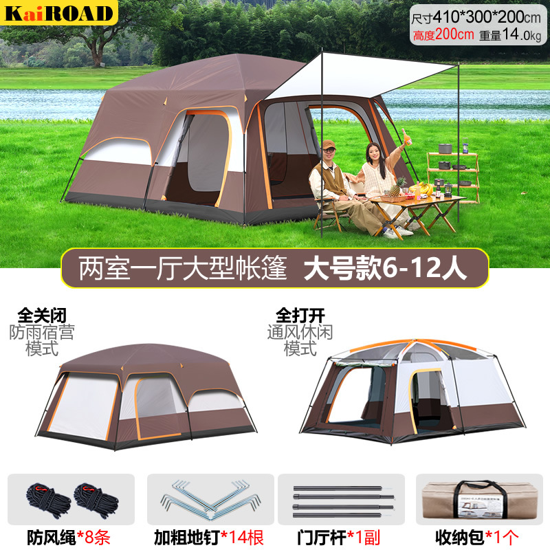 超大型户外帐篷便携式二室一厅野营用品防晒防雨露营帐篷适用多人