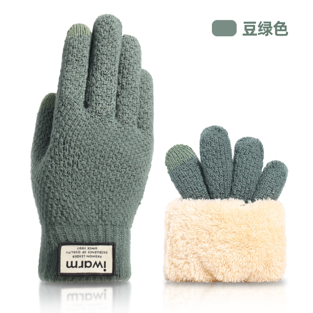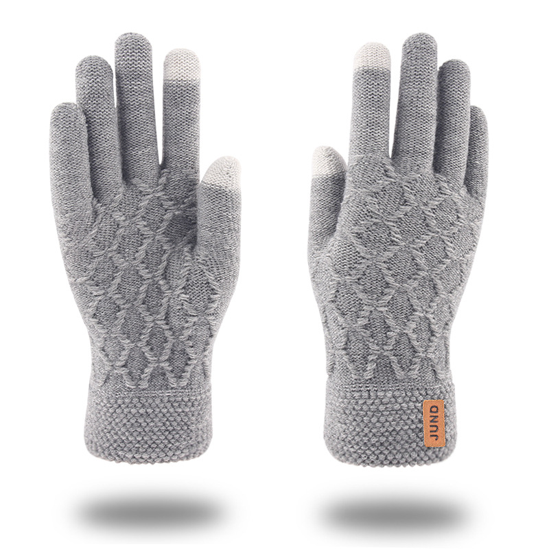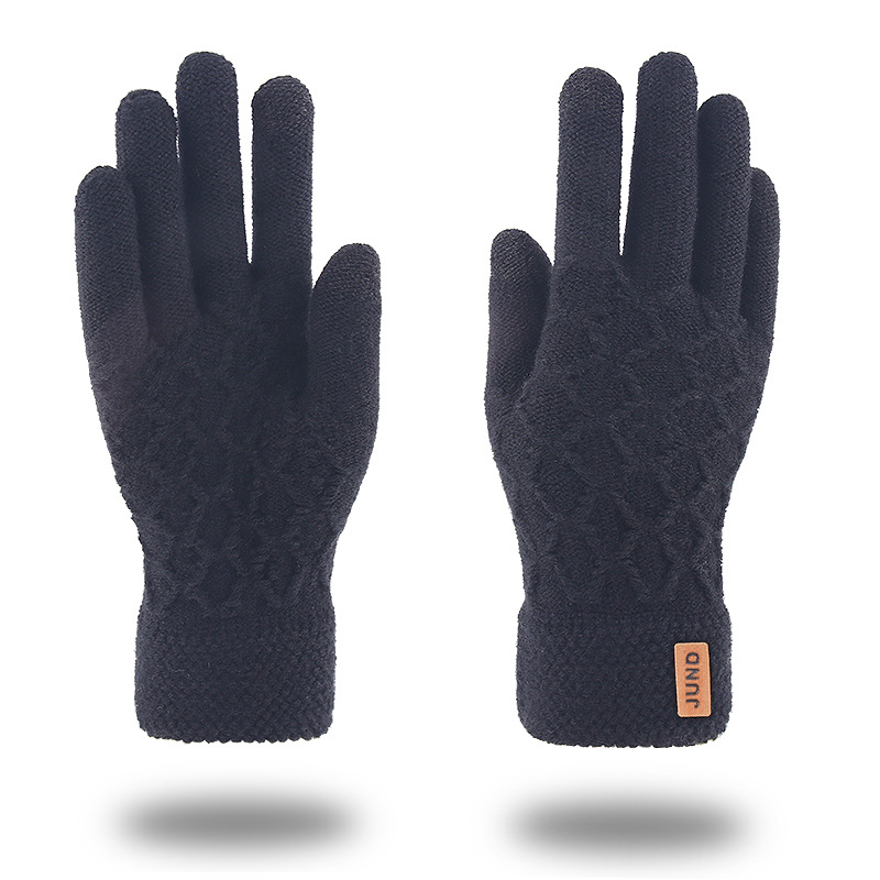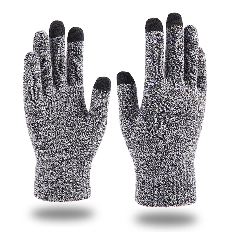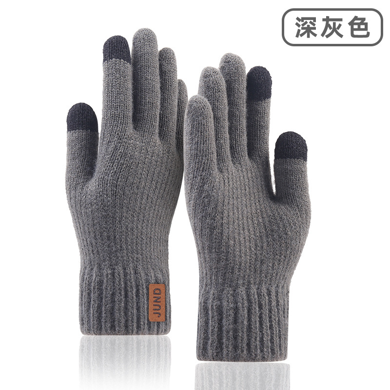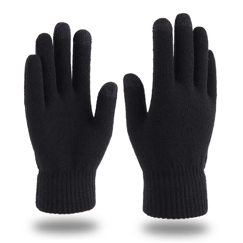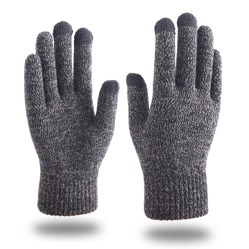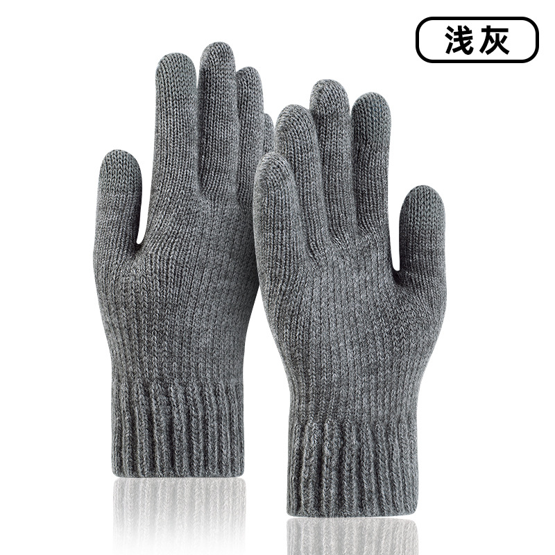 秋冬季触屏手套男士加绒双层加厚保暖毛线 针织手套跨境