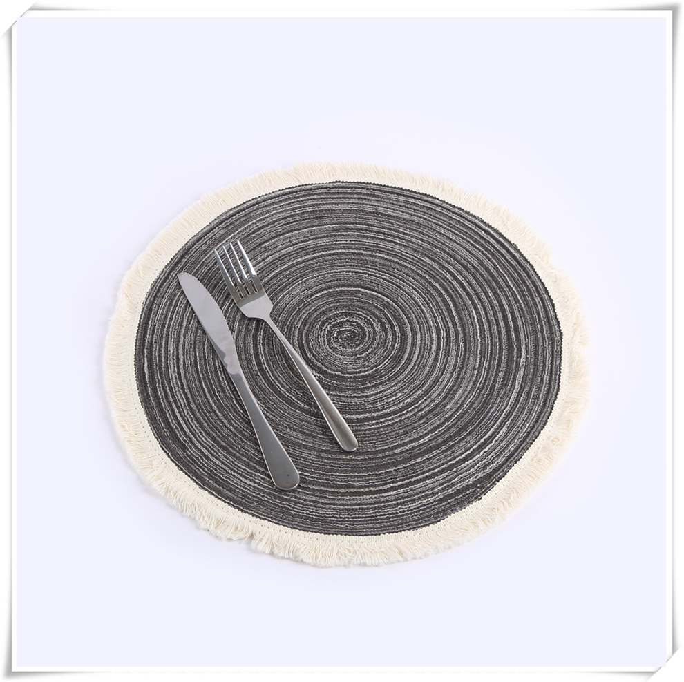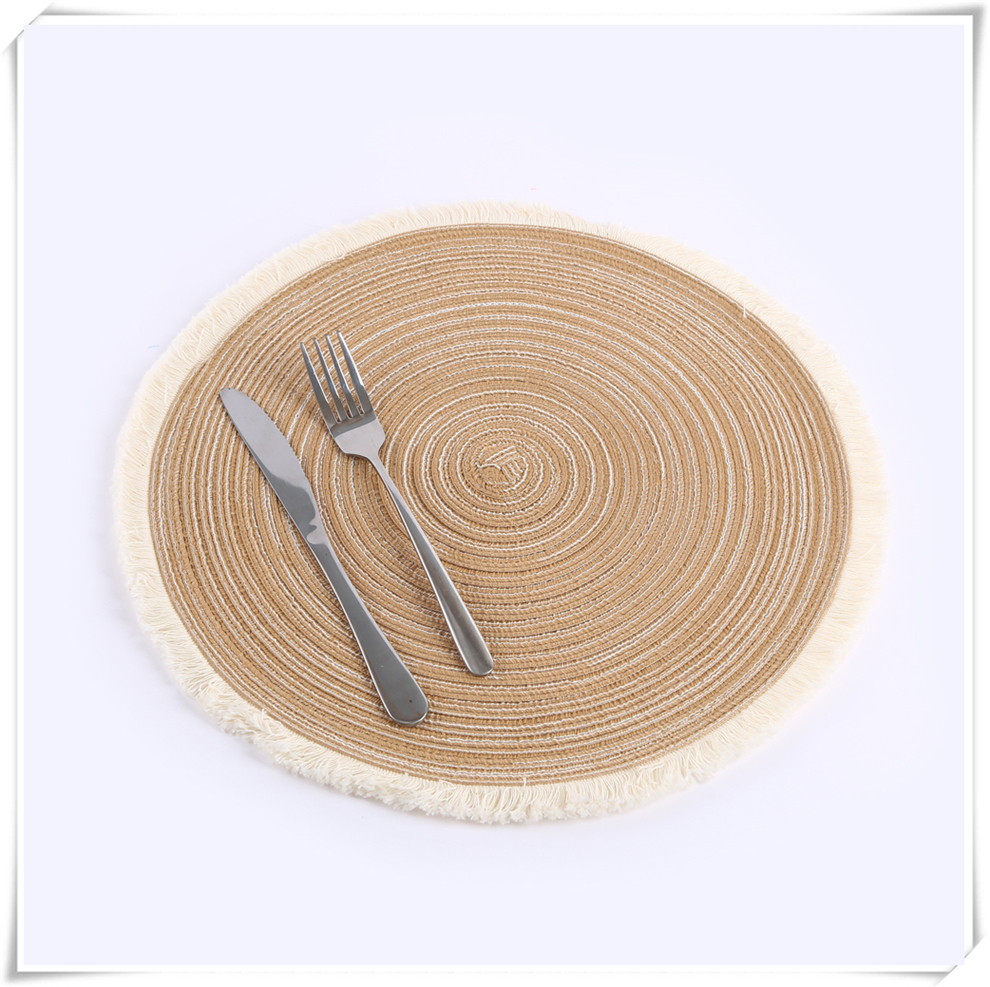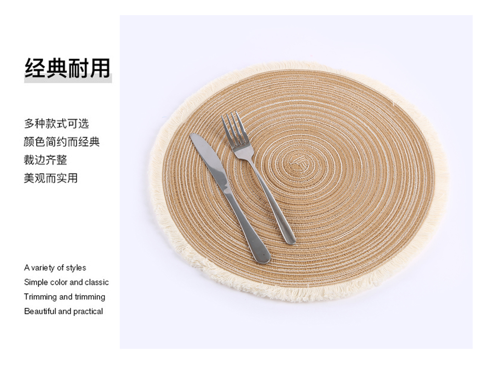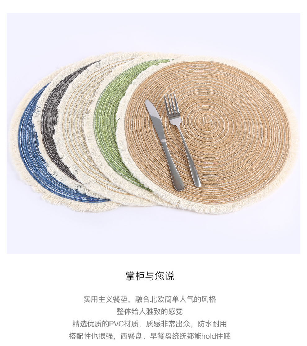 产品名称:流苏边编织杯垫ins风北欧餐垫 棉麻质感餐桌隔热垫 圆形装饰垫子