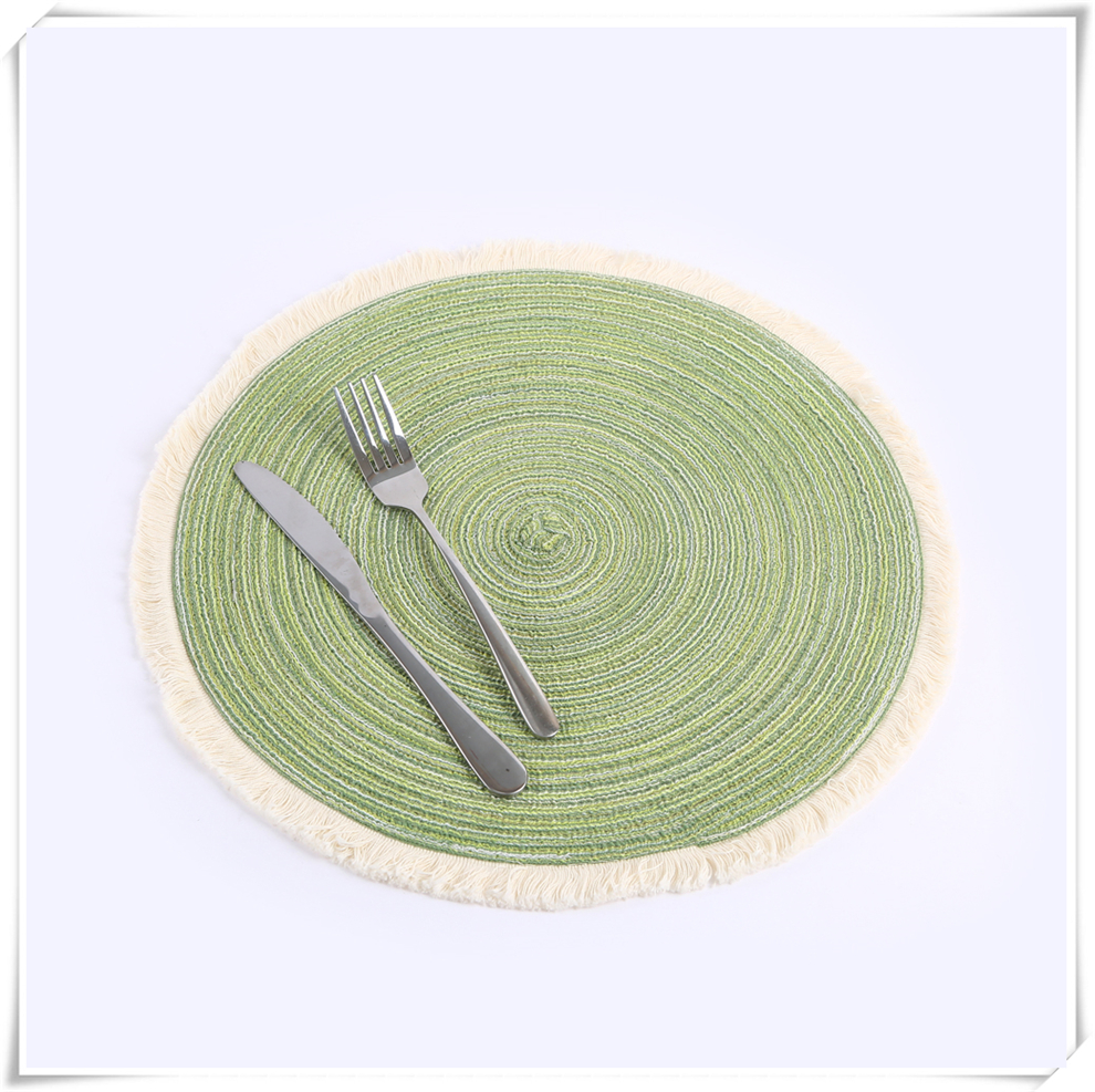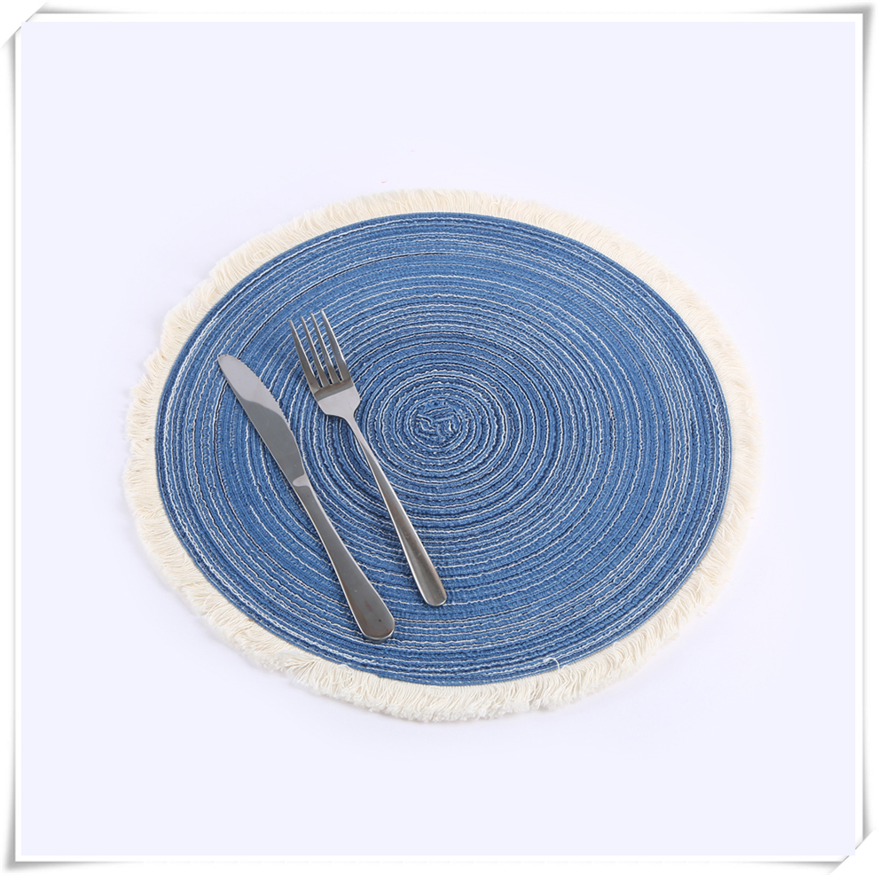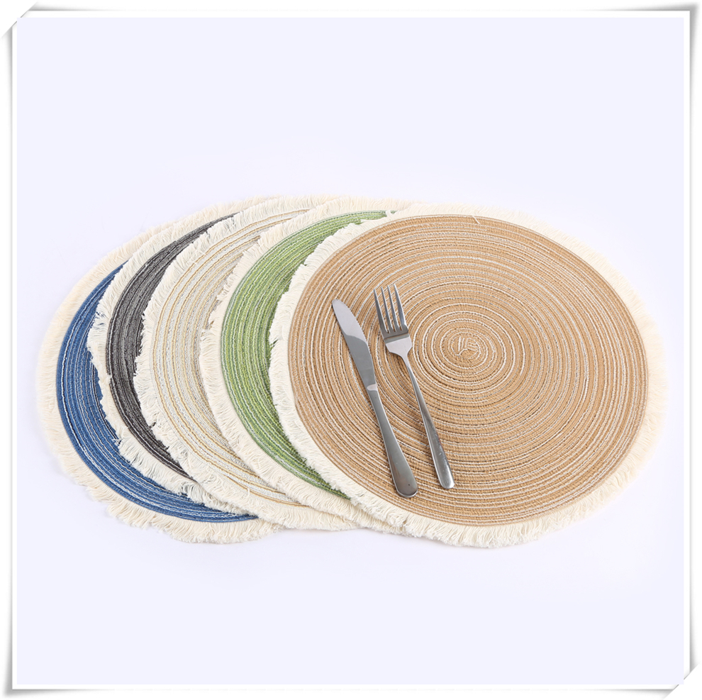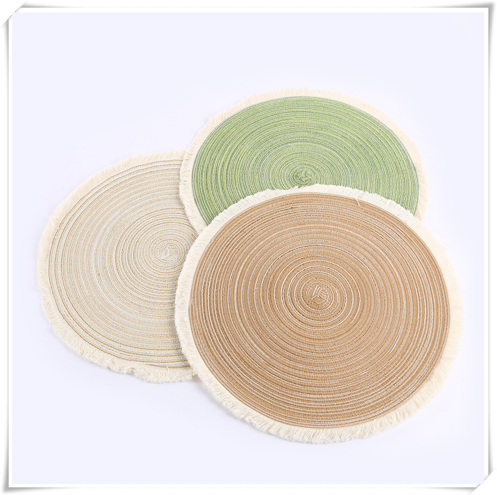 产品名称:流苏边编织杯垫ins风北欧餐垫 棉麻质感餐桌隔热垫 圆形装饰垫子